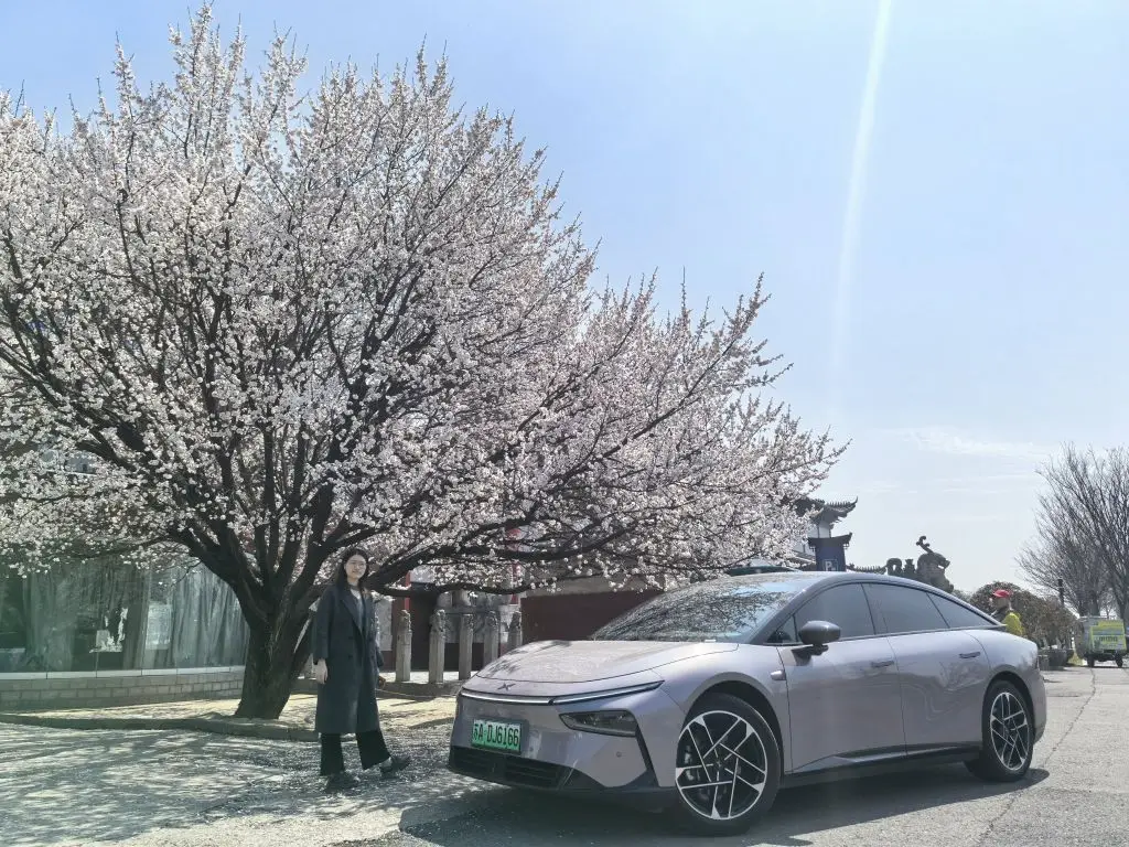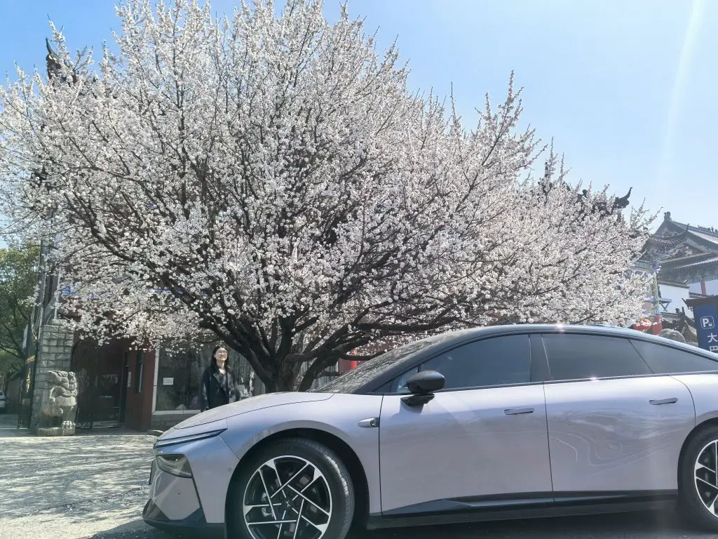 路过溧水周园时,远远就被门口一棵超大樱花树吸引。树干粗壮,一看就很有年头,枝条舒展茂密,樱花正开得轰轰烈烈。就长在路边,停车就能直接拍,独独一棵樱花树,来往打卡的人很少,几乎没人抢镜,360°无死角随便拍,完全不用担心路人闯入镜头。风一吹,樱花簌簌飘落,给我的小鹏P7+淋了一场温柔的樱花雨,浪漫到心坎里。