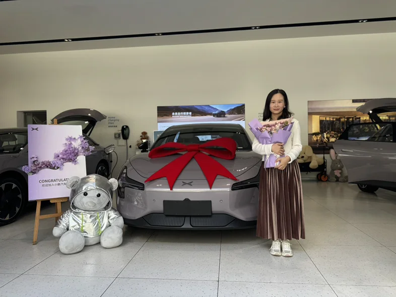#小鹏汽车#我的小鹏Mona03终于提车啦,提车当天好开心,车子颜值太高了,还送一束很美的紫色鲜花,跟我的小紫特别搭,还有盲盒小熊,情绪价值拉满了。销售小哥哥服务态度也特别好,提车过程非常满意。目前车子开下来也非常满意,车子特别好开,很适合女孩子开😁