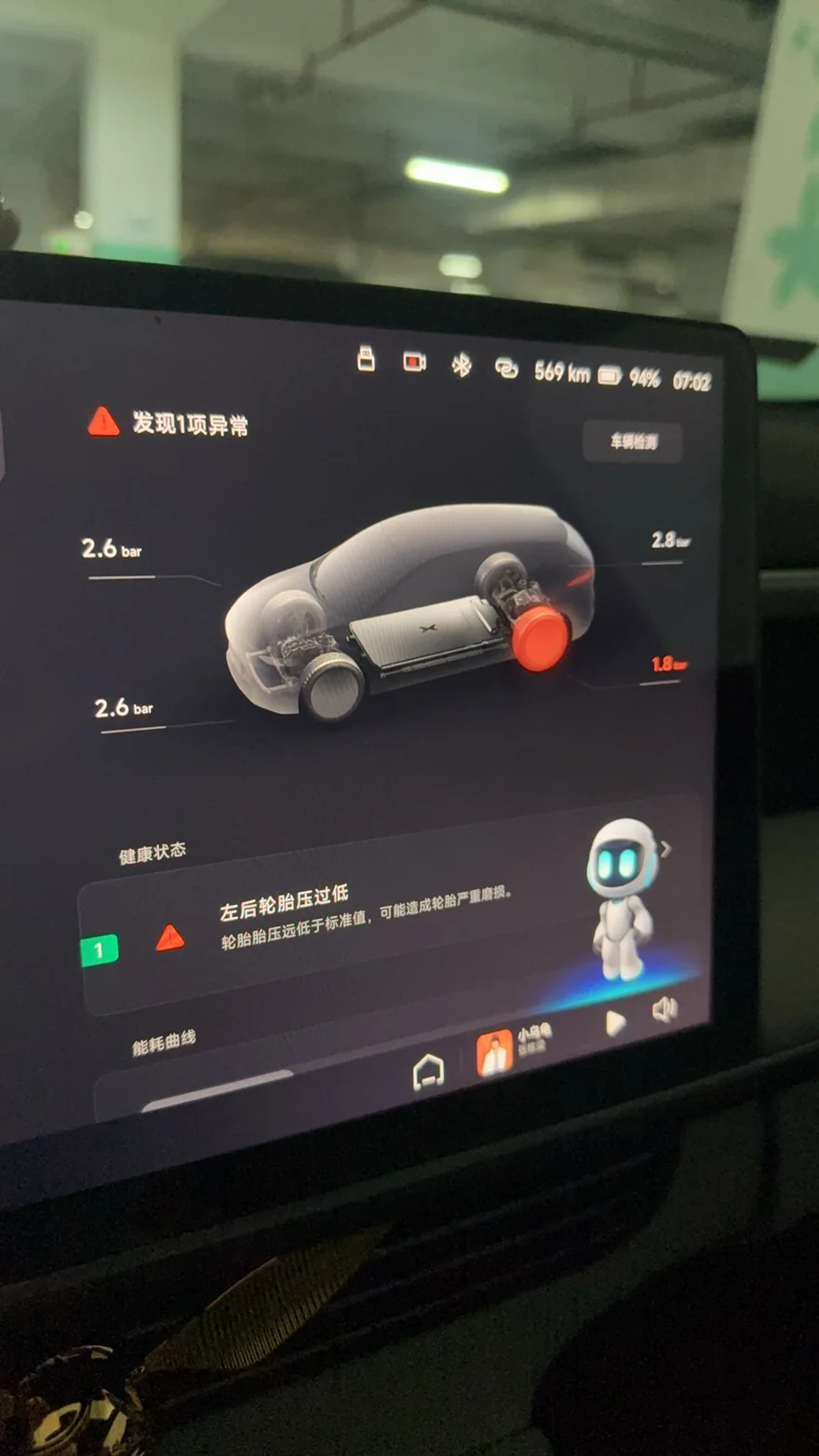 回家就直接停车库了 早上开车发现胎压极低