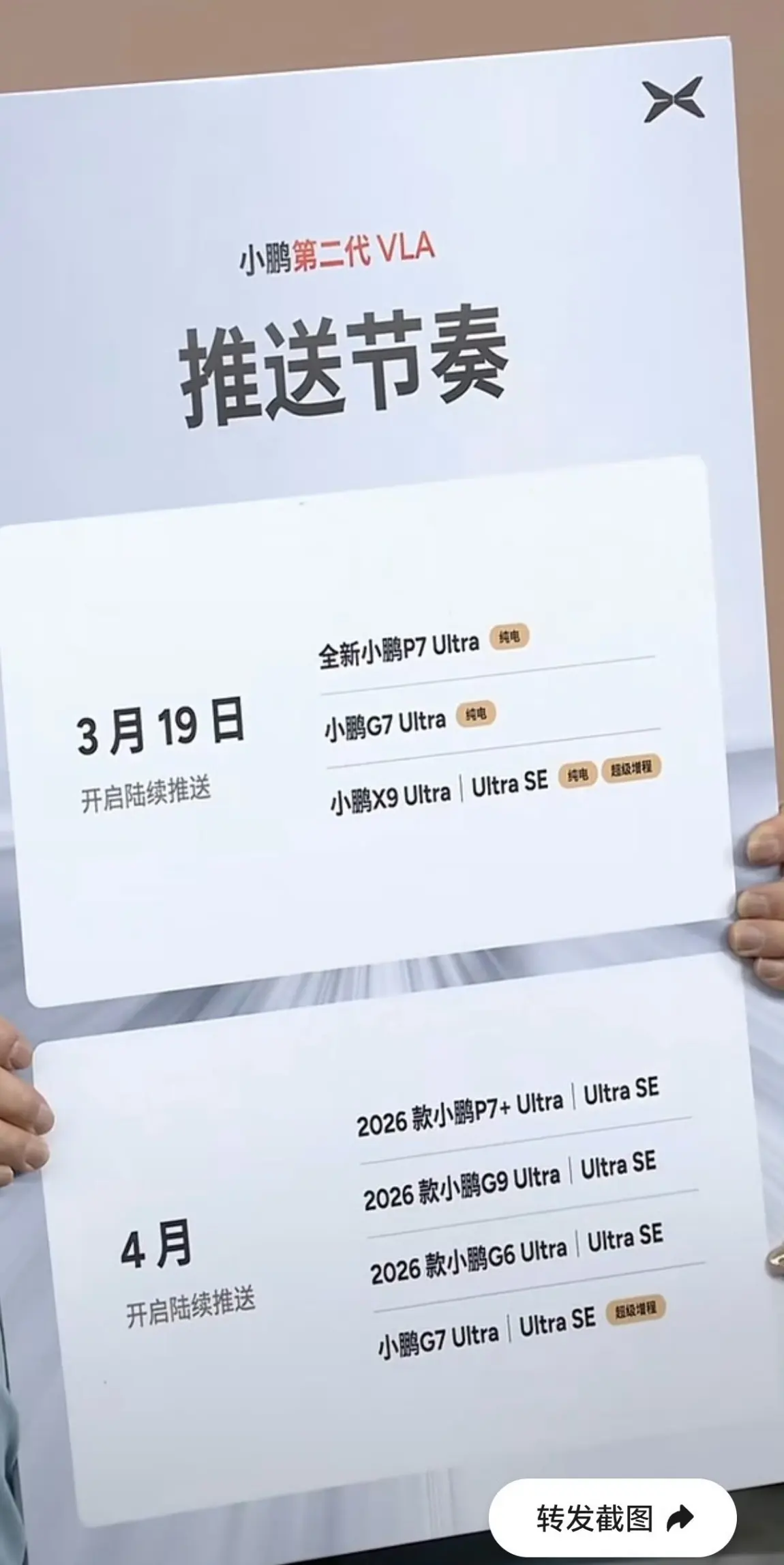 #第二代VLA# 昨晚看了直播,大师兄明确说将在3月19日开启逐步推送第二代VLA,预计先推送P7 Ultra,再推送G7和X9 Ultra。哈哈,已经迫不及待要体验了。希望今年在VLM上同样能有大的突破。