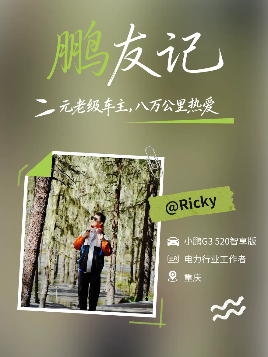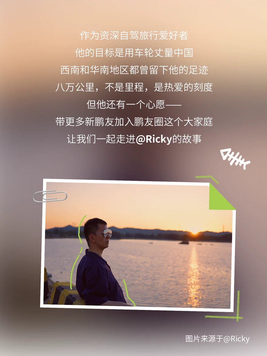 八万公里,车轮为笔,山河为卷。他的目标很纯粹:用足迹丈量中国,开着小鹏,走遍大江南北。作为元老级车主,他最开心的,是带新鹏友“入坑”。不止分享用车经验,更带着他们感受车友会的温度——让一辆车的价值,从出行工具,衍生为一群人的相遇。这就是@Ricky捌陆➡渝鹏汇 的故事,八万公里,热爱不退场。#鹏友记#