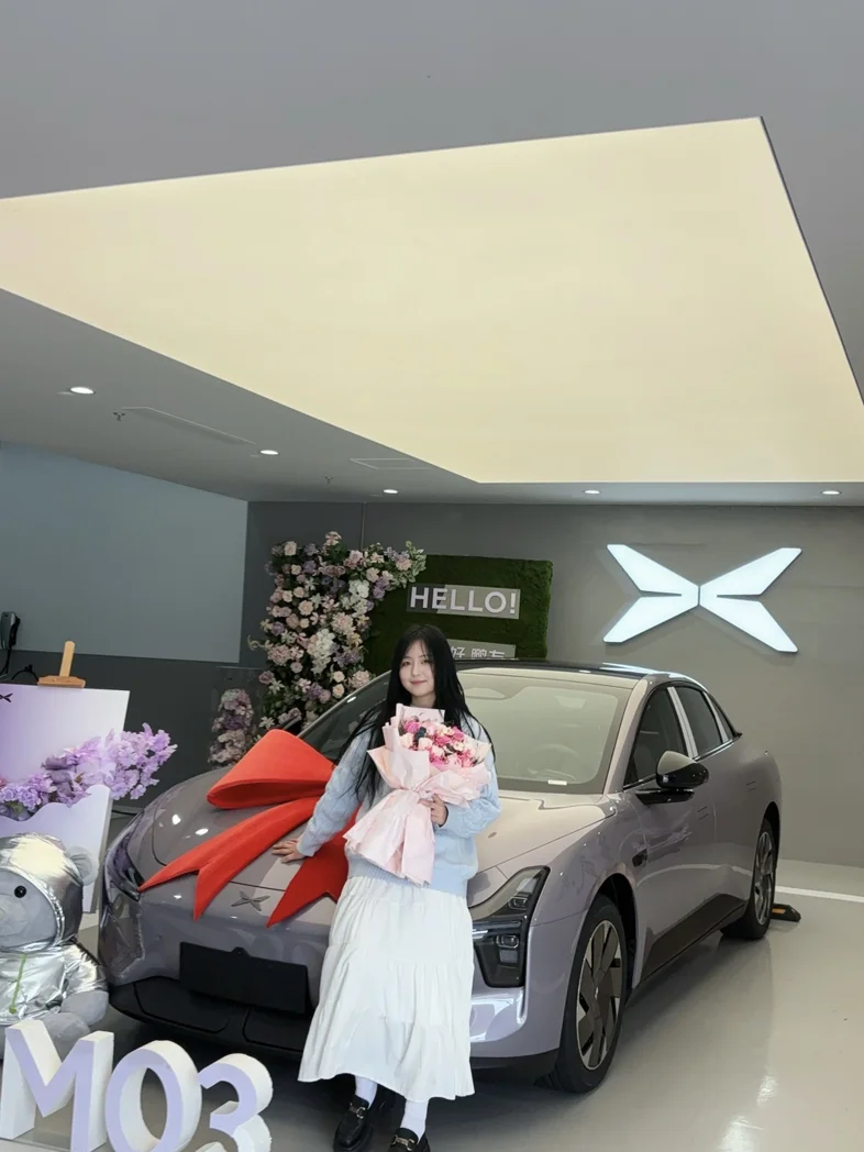 很早就关注了小鹏m03,今年终于全款拿下了!提车之前在网上做足了攻略,写了两大页笔记,带着激动忐忑的心情来到了交付中心,验车、买保险、选号、交税。过程没有我想象的那么复杂,负责交付的小姐姐非常贴心,人也超级好,给我讲解了车内功能,还拍了美美的照片!提车过程真的很愉快。小鹏很好开,刚取到车我就自己开到车管所交税了,对于一个驾车经验不足的新手来说,这台车真的非常友好,智能化程度很高,如果没有自动泊车功能可能我只能劈叉停到大马路上了哈哈。提车后请了一个代驾替我上高速,高速上他基本上一直开着智驾,仅在过减速带的时候接管过两次,代驾师傅对小鹏的智驾也是赞不绝口!我的小紫顺利开回目的地了,我也成为了一个勇敢的大人了!!!