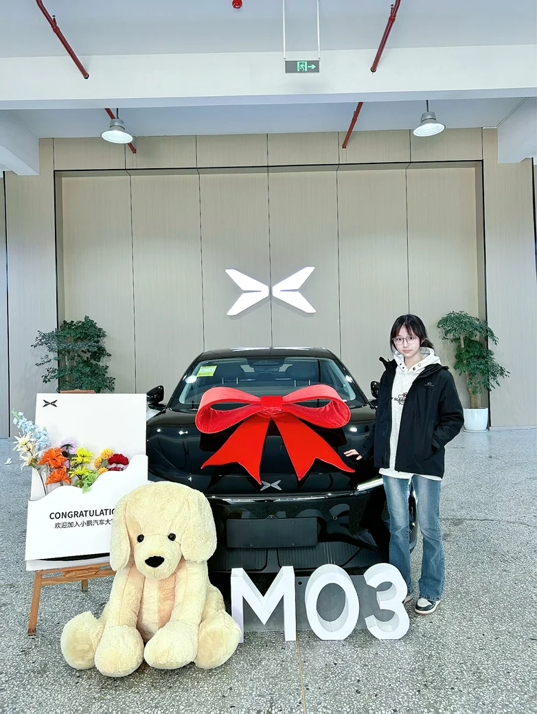 #我的提车作业# 喜提我的梦中情车🚗小鹏M03✨谁能拒绝一台颜值与智能并存的小黑胖!提车仪式感直接拉满💯超大红蝴蝶结+软fufu玩偶,交付中心还贴心准备了花束,拍照超出片📸从看车到提车全程顺畅,销售小哥耐心讲解功能,智能座舱流畅到飞起,坐进去就不想下车!作为人生第一台电车,真的太满意啦~未来要和我的M03一起解锁更多风景,奔赴每一场热爱🥰#小鹏M03 #小鹏MONA M03颜值美学# #小鹏MONA M03#