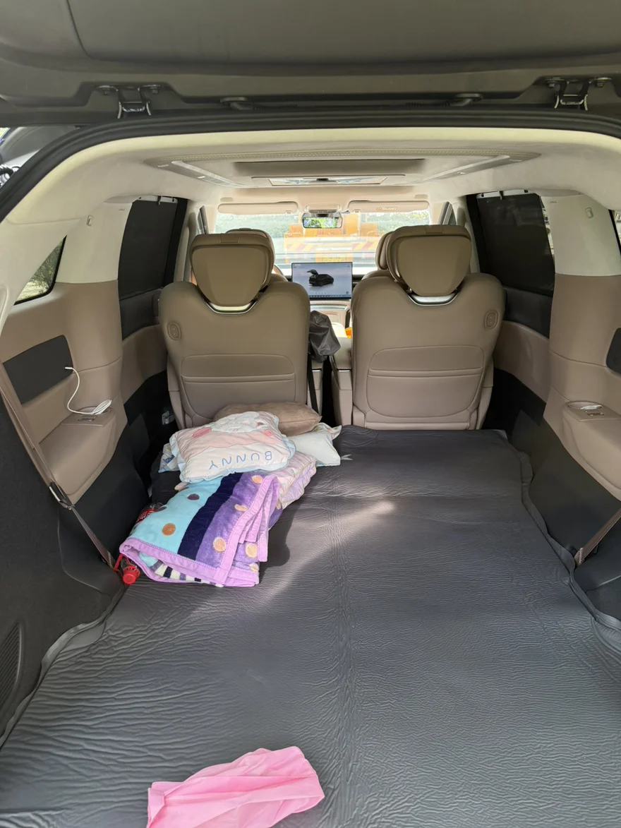 把春日搬进小鹏X9后备箱 自从有了小鹏X9,带娃出门春游真的太省心了✨三排座椅一放倒,后备箱瞬间变成超大移动空间,三辆自行车稳稳塞下,娃的小毯子、小玩具、零食包也都有地方放,再也不用纠结取舍。 找个有草有湖的地方停下,搭个小天幕,吹着春风,看着娃在草地上跑,自己坐在车里歇会儿,整个人都松弛下来。不用赶行程,不用挤景点,一家人安安静静待着就很舒服,这种不慌不忙的春日时光,真的太治愈了。#小鹏汽车 #把春日搬进小鹏X9后备箱 #后排魔变空间 #后备箱春日美图 #亲子春游