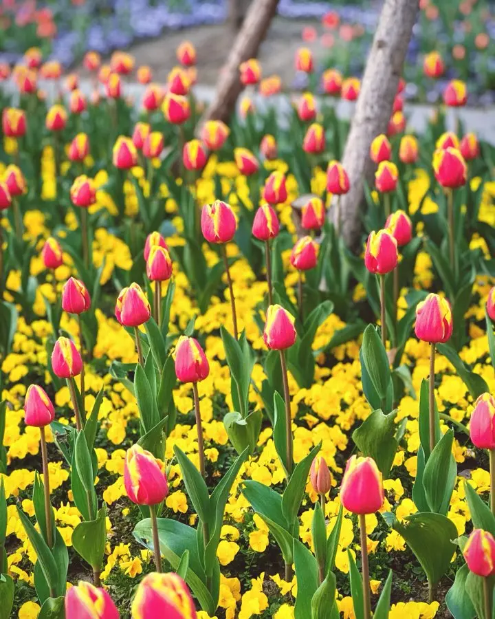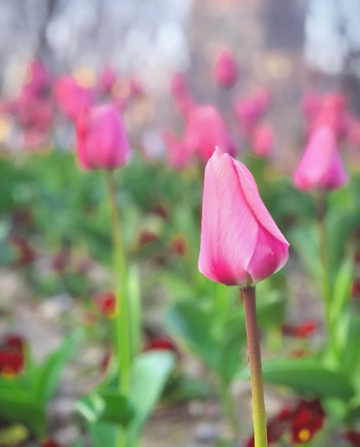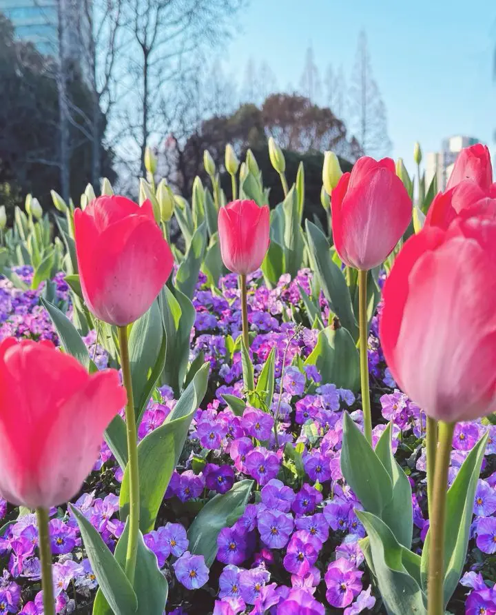 建议一定要从北门进,我们一开始走反了,多绕了些路。中央草坪附近有大片的郁金香,3月14日去的时候正值盛花期,已经开了大概七成。清晨和下午的阳光最温柔,随手一拍都超出片!