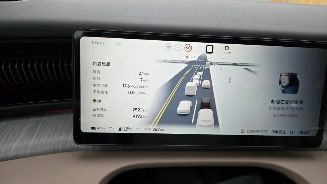 增程器存在感:提车时兴奋地加了一箱油,结果一个月过去了,油还剩一大半!为了"消耗"点油,我甚至一度刻意开强制增程。关键是,增程器启动时真的几乎无感——无论是等红灯还是高速上强制启动,震动和噪音都微乎其微,甚至比不上空调压缩机的声音。