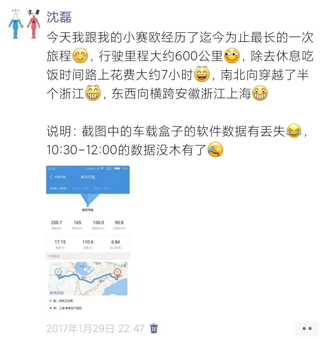 从车载盒子信息看(图三),那天行车时间段为8:35-19:32,再结合图二那天我对当时的描述,总结为: