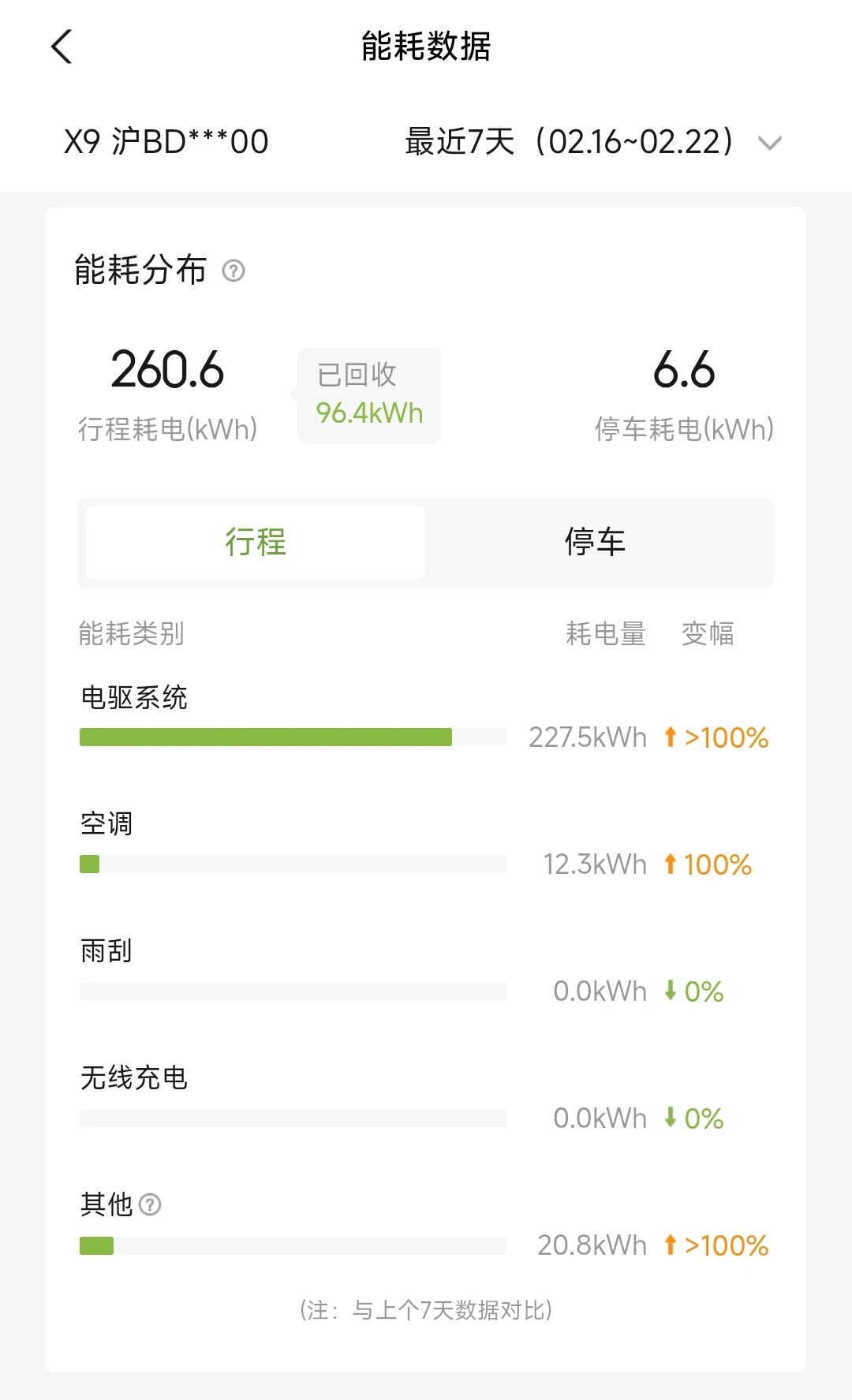 耗电267.2度(回收电能96.4度,回收量挺牛啊)