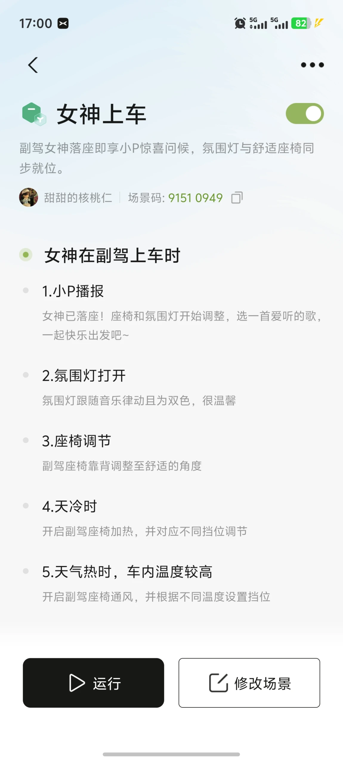 女神节给我家女王大人安排了专属的出行浪漫!设置了一键触发的女神专属智慧场景,上车启动车辆,座椅自动调到最舒适的角度,空调开启24℃恒温模式,同时自动播放这份为女王大人精挑细选的酷狗女神节专属歌单,温柔的旋律瞬间填满整个座舱,把所有的温柔与爱意都藏在每一次出行里。
