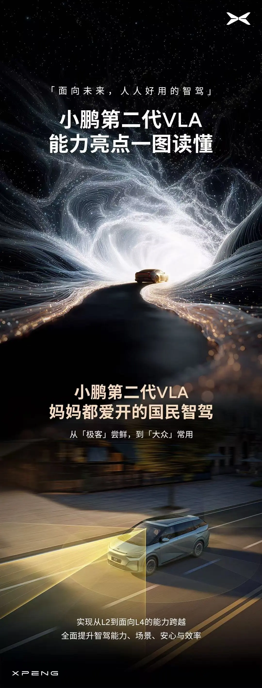 第二代VLA去掉传统智驾“视觉信息→语言理解→动作生成”的繁琐转译环节,直接实现“视觉信号→动作输出”的端到端响应。实际上路,系统决策延迟被压缩至80毫秒以内,推理效率较上一代提升12倍。 紧急避让测试:在时速80公里的紧急避让测试中,前方突发障碍物时,系统无需犹豫计算,0.08秒内完成制动规划,刹车距离较传统系统缩短近3米,消除了智驾的迟滞感。地库原地激活:在老旧小区地下车库,无高精地图覆盖的环境下,系统仅凭实时视觉感知完成漫游寻址。从车位起步时,精准识别闸机宽度与边界,以2km/h的低速平稳穿过,方向盘微调幅度控制在2°以内,无需任何手动干预,顺利驶出车库。 乡村土路挑战:土路无车道线、坑洼密布且偶有行人穿行。系统通过识别物理路缘与环境特征,稳定维持30km/h行驶轨迹。遇到路面深坑时,提前100米感知并平滑减速至18km/h,小幅调整方向绕行,全程无顿挫。面对路边突然冲出的孩童,系统在5米外即完成预判,线性减速并预留安全距离。 晚高峰博弈:在杭州晚高峰的拥堵路段,面对逆行电动车频繁穿插,系统提前识别风险,以柔和轨迹避让,不抢行、不迟疑;遇到救护车鸣笛时,自动打灯靠边减速让行,路权切换自然流畅。官方数据显示,其通行效率较传统L2系统提升30%,加塞处理成功率达98%。 夜间暗光挑战:夜间无灯路段,系统夜间对深色物体的识别率较上一代提升72%,黑衣人、流浪动物等隐蔽目标在50米外即被锁定。采用线性减速策略,制动过程平稳无突兀感,乘客体感舒适度大幅提升。 细节体验测试 泊车场景:在标准车位旁的极限窄位(仅比车身宽15cm),系统自动识别车位边界,反复微调车身姿态,30秒内完成一次入位,侧方距离误差控制在3cm以内。 路口掉头:面对对向车流密集的路口,第二代VLA实时预判车辆速度与距离,温和调整转向角度,不莽撞抢行、不低效等待。实测的3次路口掉头中,均精准规划轨迹,规避剐蹭风险。小鹏第二代VLA上手5分钟就能放松,完全不用适应,像新手、女司机开都不慌,感觉像有个开了十几年的老司机在开车,稳到离谱,不管是异形车、前车突然开门、路上的减速带,还是夜里穿黑衣服的行人、突然窜出来的小动物,都能提前识别、温柔避让,是不错的选择,喜欢的可以找江北小鹏范春旭,是一个专业性很强的人!