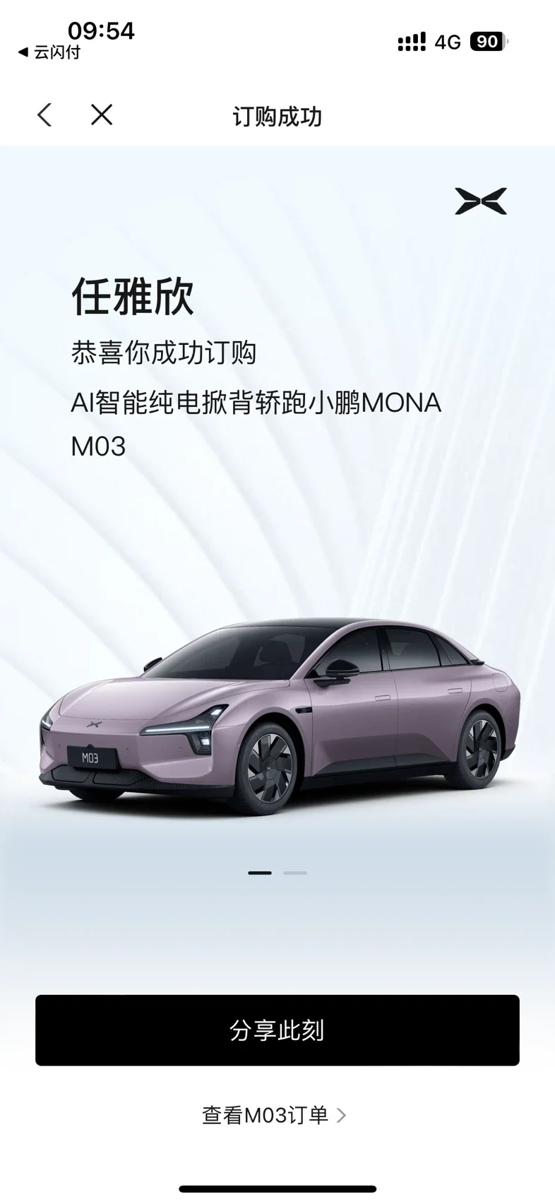 喜提小鹏M03!速度派提车,从试驾到提车仅用了不到一周的时间。试驾完立马下了定金到提车都很顺利,小紫越看越喜欢,自动泊车超好用,这两次停车都是小p停的相当规范,美滋滋~