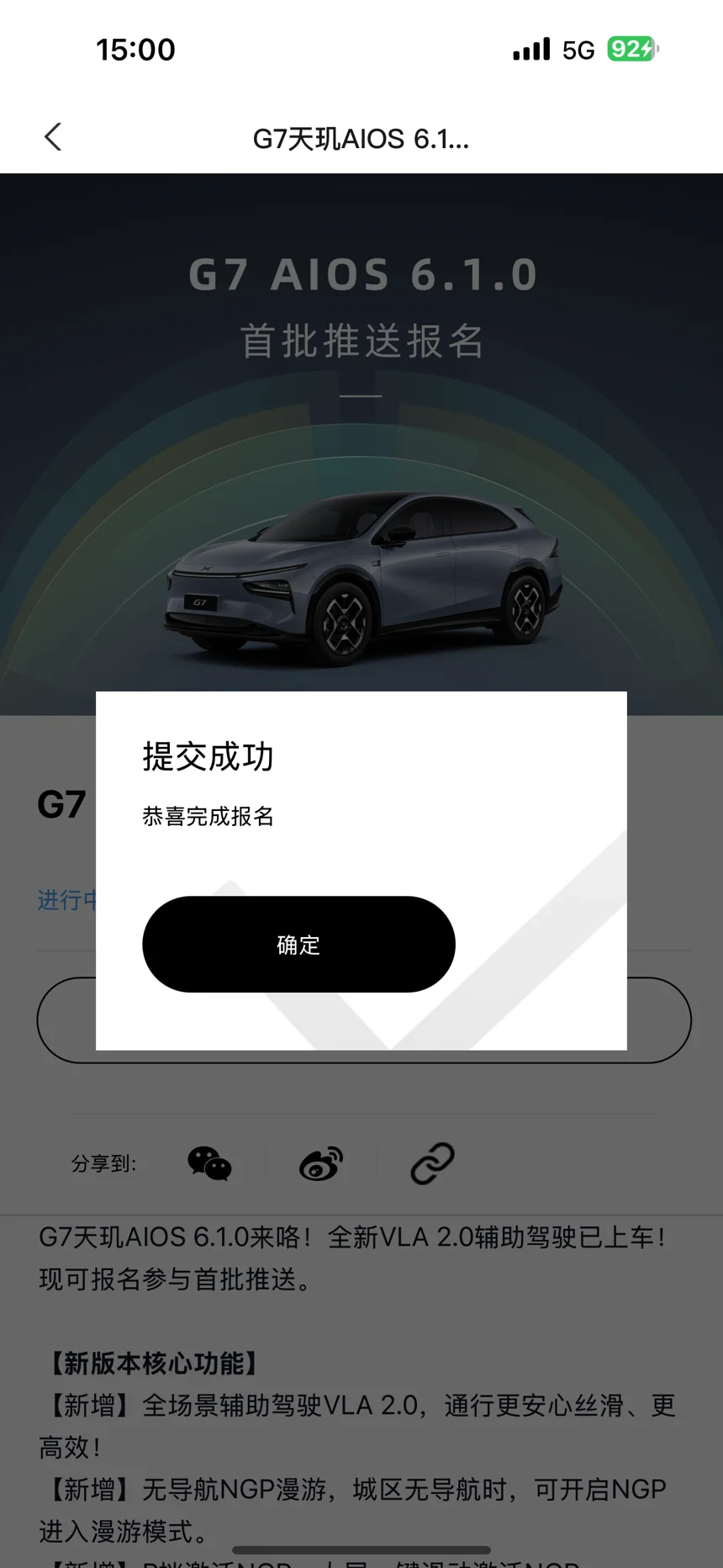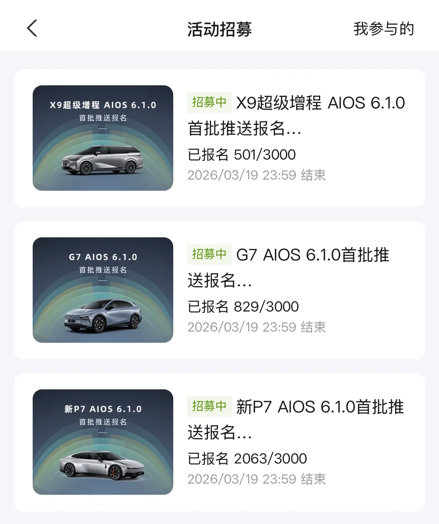#第二代VLA# 酒香也怕巷子深啊,如果不是鹏友提醒我,还真找不到报名入口,一直看宣传说的是陆续推送,还以为坐等就行,哪里知道还要自己报名,看看G7和X9的报名情况,有点尴尬呀,app好歹来个消息提示也好啊😆期待第二代VLA的实际表现😌