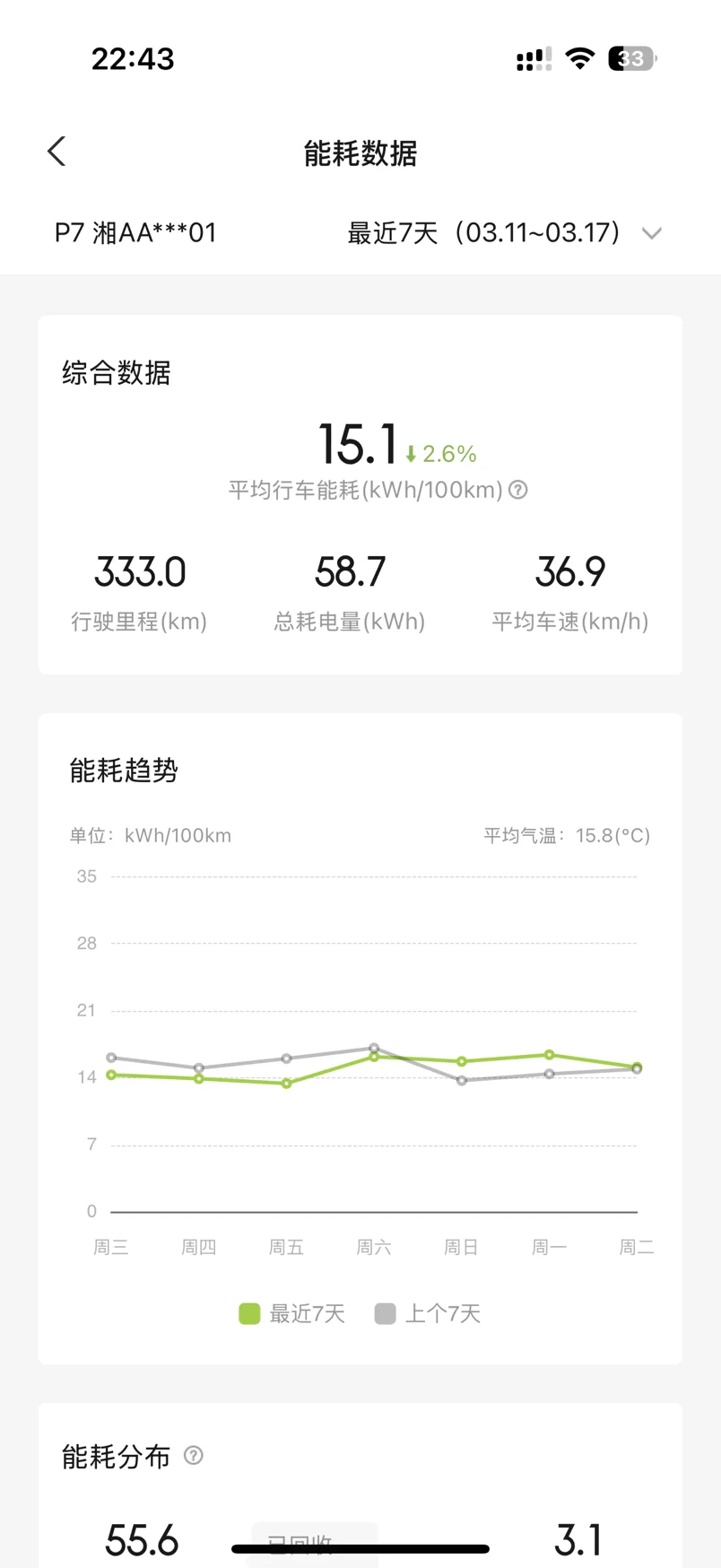 最近7天(03.11-03.17)开着我的小鹏P7通勤+周末短途出行,平均气温15.8℃的春天太适合电车发挥了!综合能耗做到了15.1kWh/100km,比上一周还降了2.6%,给大家分享下我的省电小心得👇