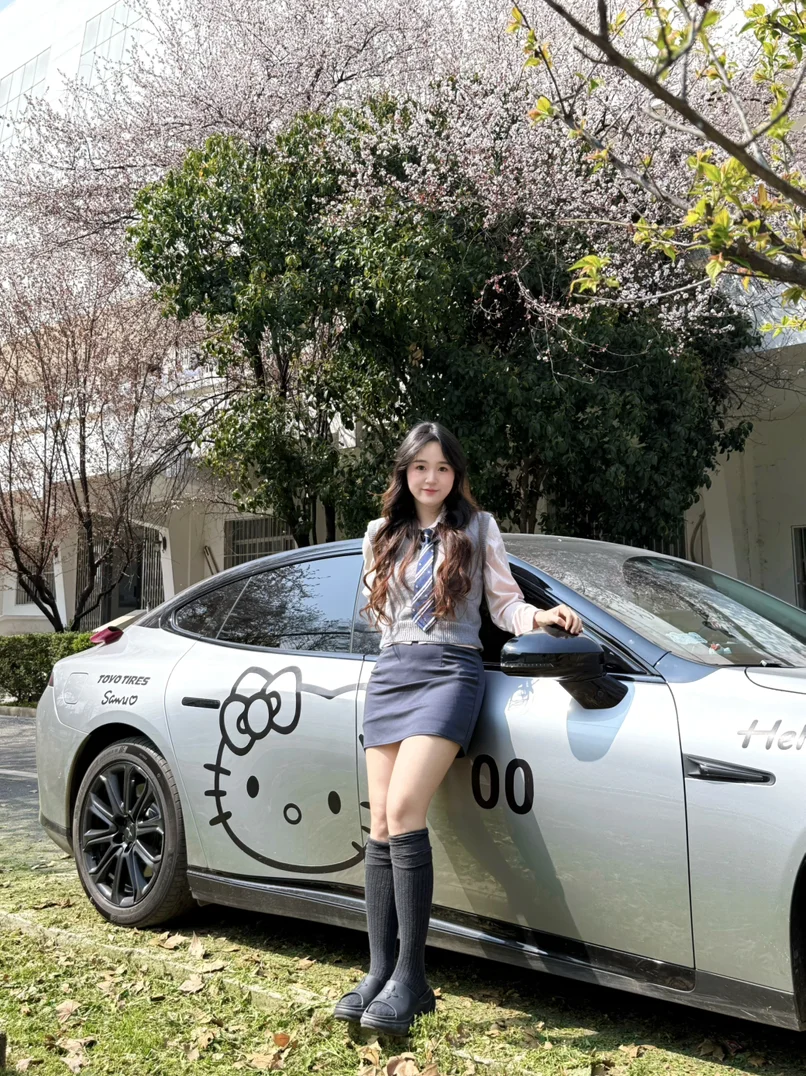 #小鹏影像记录家# 开着我的Kitty版小鹏P7奔赴春日花海🌸粉樱与银车同框,低角度拍出满满氛围感,车窗框住的不仅是花影,更是春天的温柔。每次自驾赏花都被治愈,和小鹏一起定格车与花的浪漫瞬间,不负三月好春光~