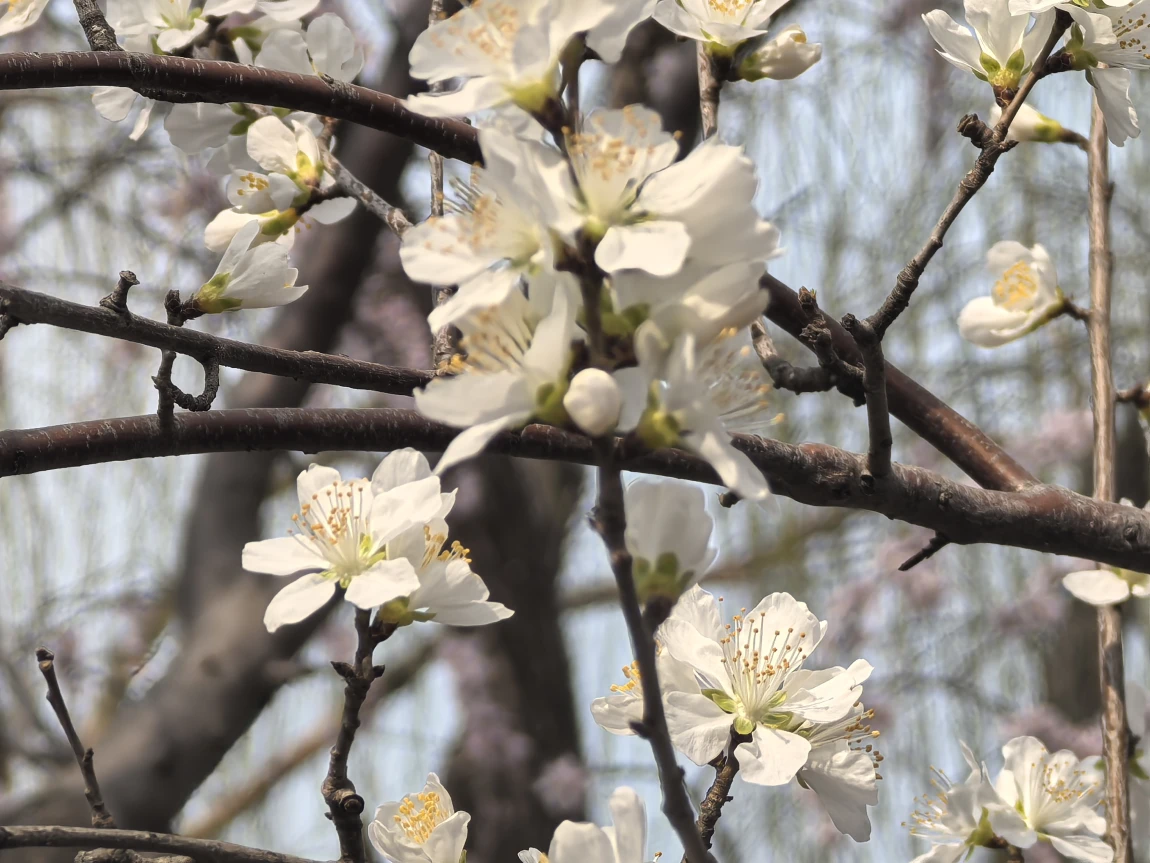 从古建筑旁的粉桃,到河畔的白梅与连翘,再到枝头待放的花苞,每一朵花都是春天写给人间的信。粉的温柔、白的纯粹、黄的明媚,在阳光下层层舒展,连空气里都飘着甜香。