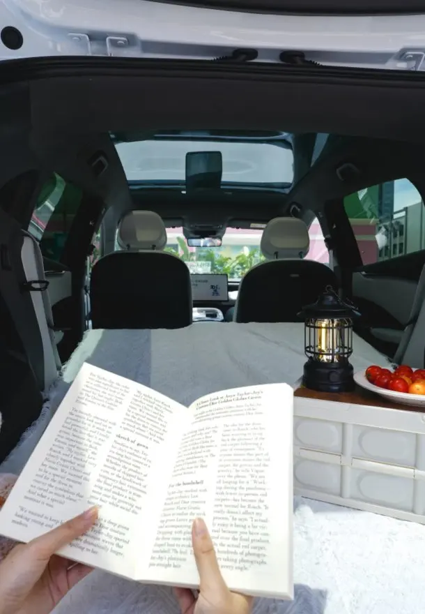 车窗遮阳帘一拉,音乐关掉、屏幕调暗,瞬间拥有私密小卧室。