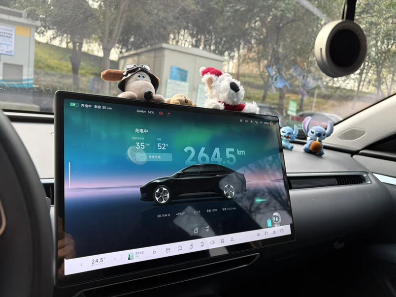#车内治愈时刻# 属于自己单独的时间。下班的路上听着喜欢的播客,到家之后坐车里放空一会!晚上的时候,mona的氛围灯,提供的情绪价值,都是提车之后带来的!还有就是喜欢在车里,看一集动漫这个视听体验和电影院一样了!