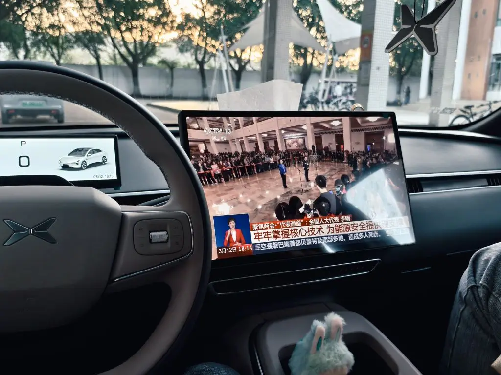 坐在车里,沉醉于如诗落日,微风温柔相伴,打开电视直播有点小惬意。