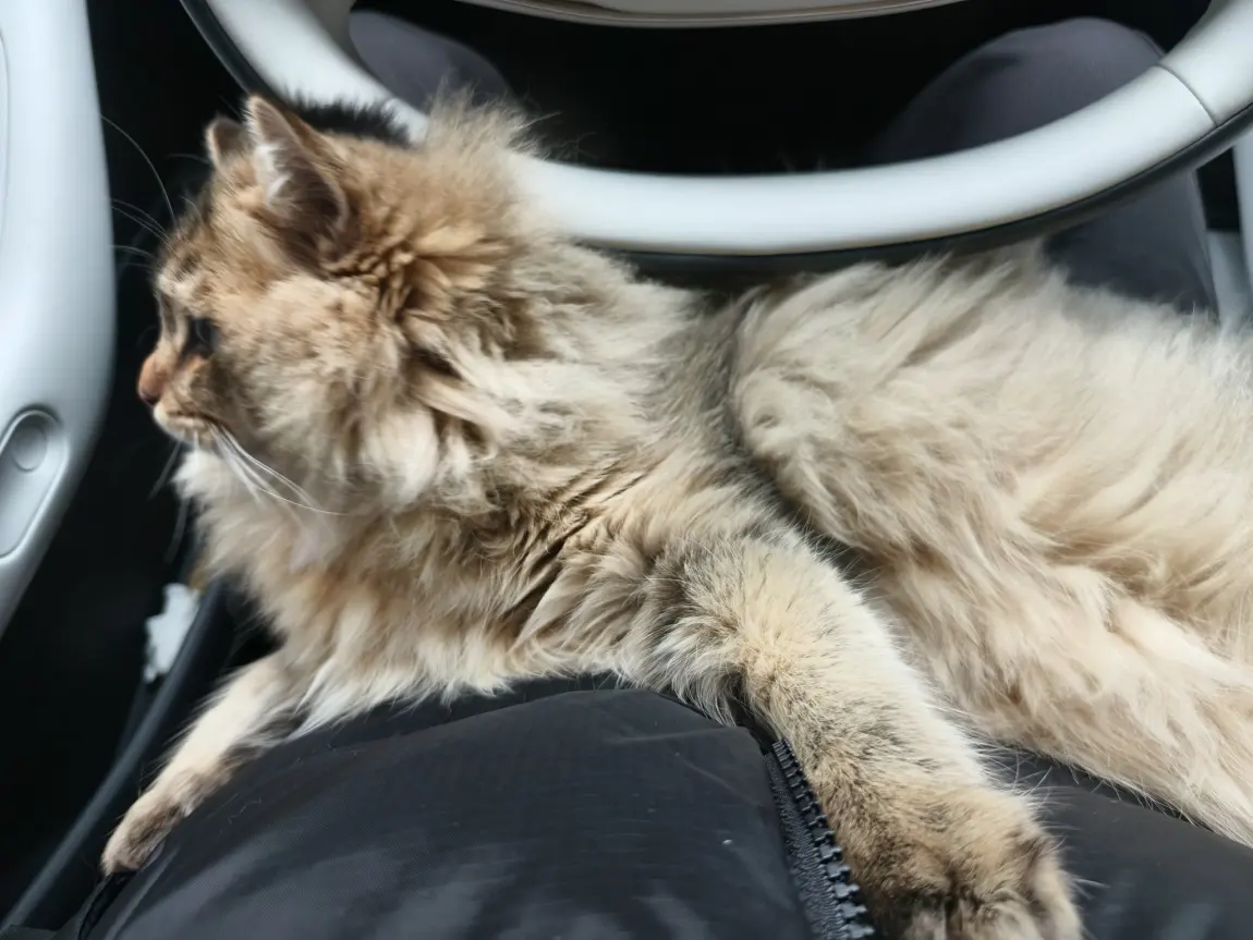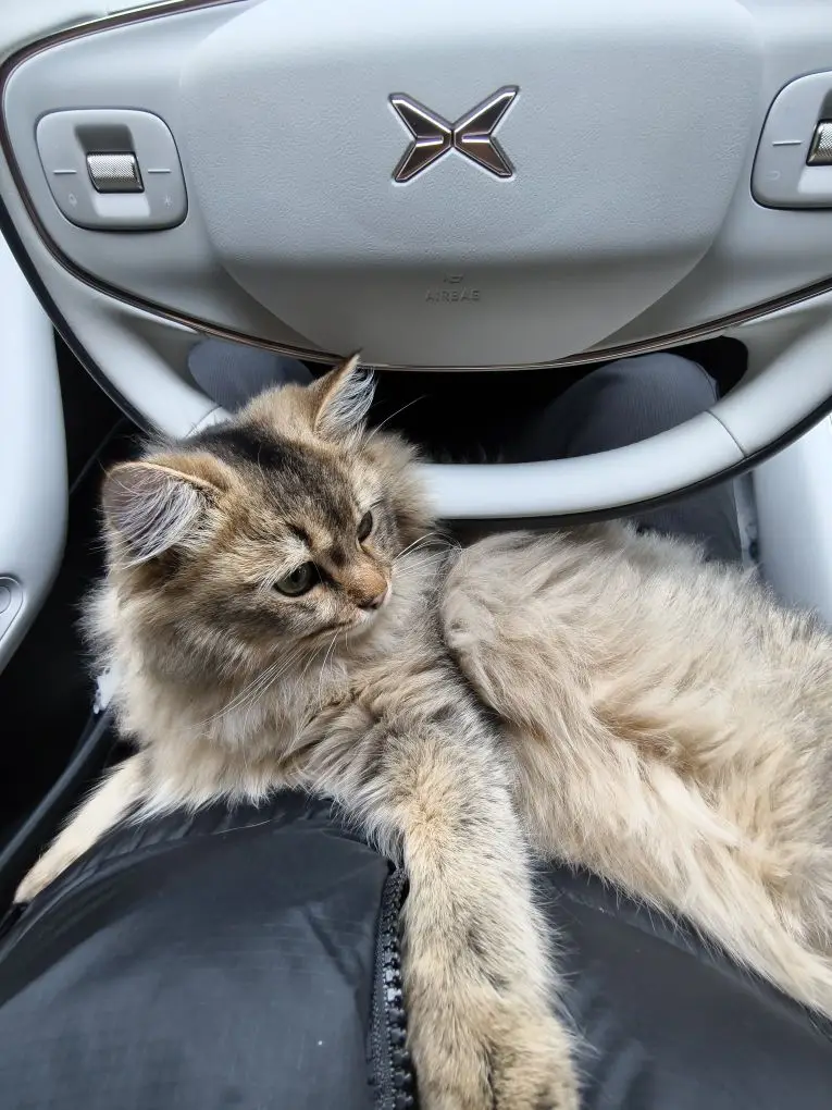 在车上和小猫咪一起度过,超级温馨好吧。有一说一白色内饰没有想象中的那么难打理,猫猫在车上蹿下跳的也很宽敞呢。