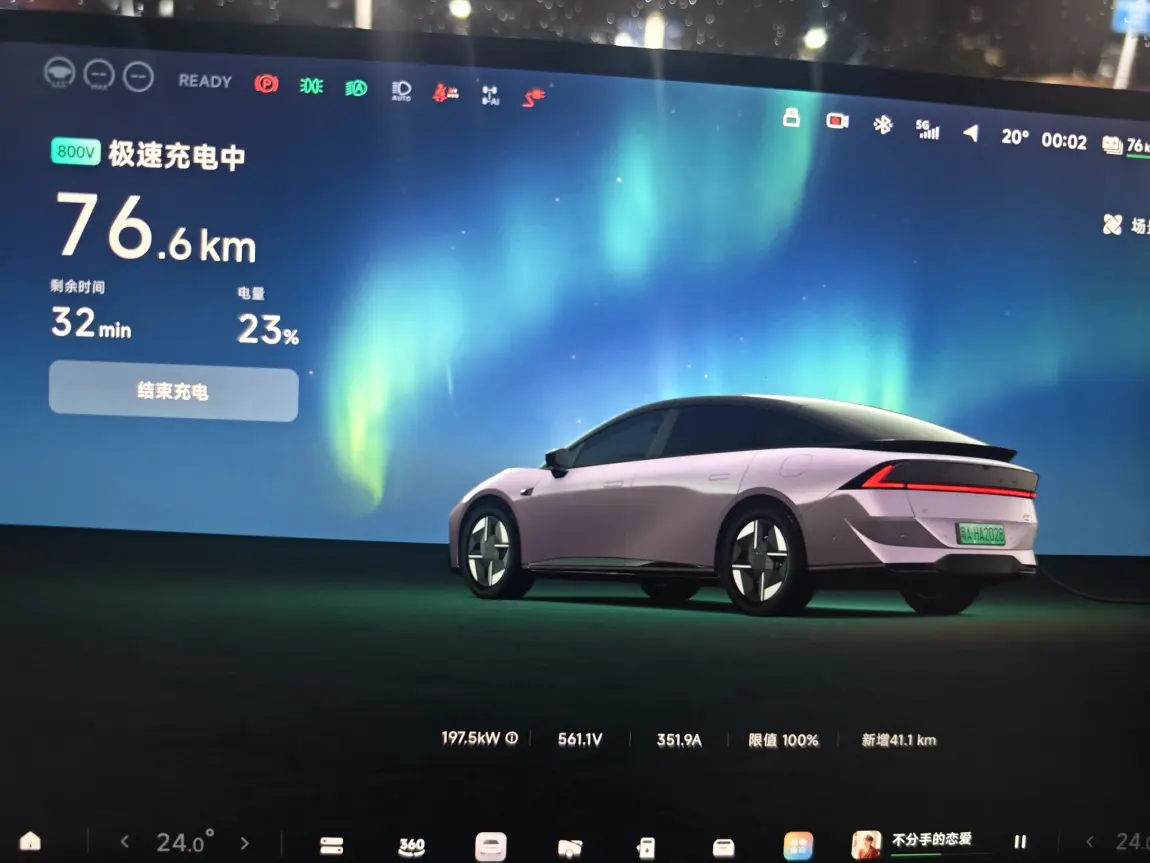 从广州出发,满电出发一路NGP,解放双手太香了!中途补能,800V高压平台真不是盖的,喝杯咖啡的功夫就从23%冲到了80%,续航焦虑?不存在的!