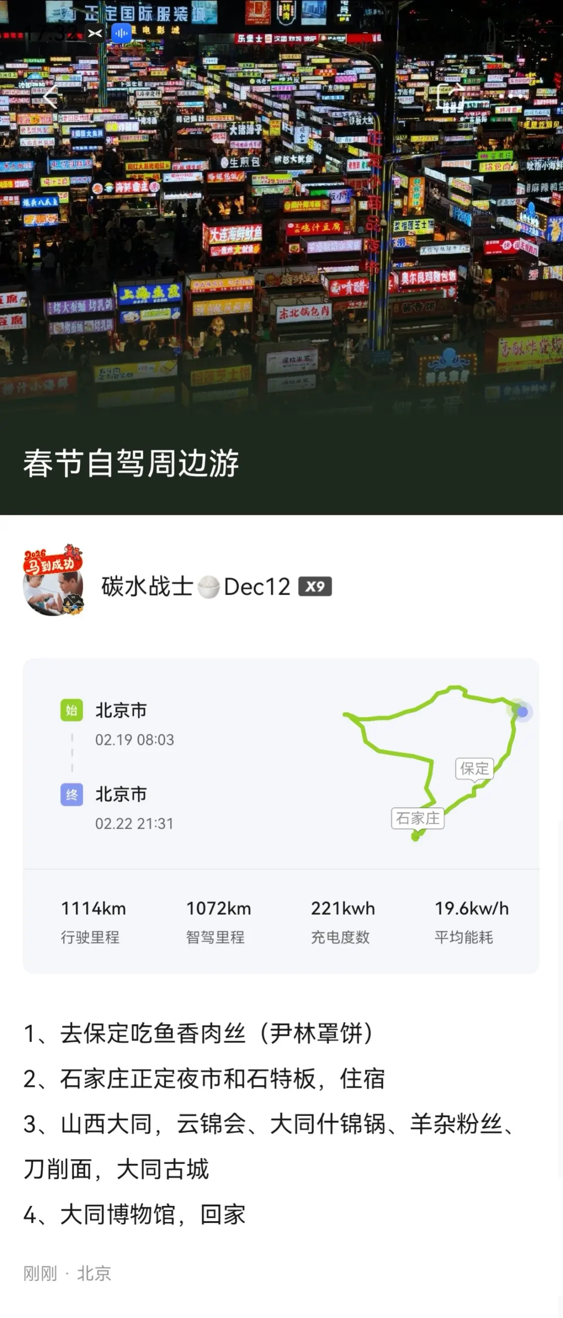 还有人质疑小鹏的ngp吗,看看春节这几天的出游记录,全程基本都是ngp,开车一点都不累的。科技改变生活了