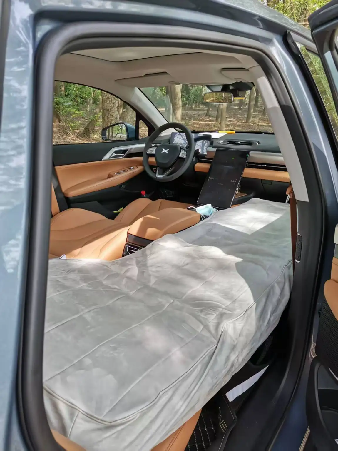 每次开着我的小鹏P5停在林间,都忍不住解锁它的睡眠空间。把前排座椅完全放倒,和后排拼成一张平整的大床,铺上定制的床垫,拉上隐私帘,瞬间就从驾驶座切换到了专属卧室。