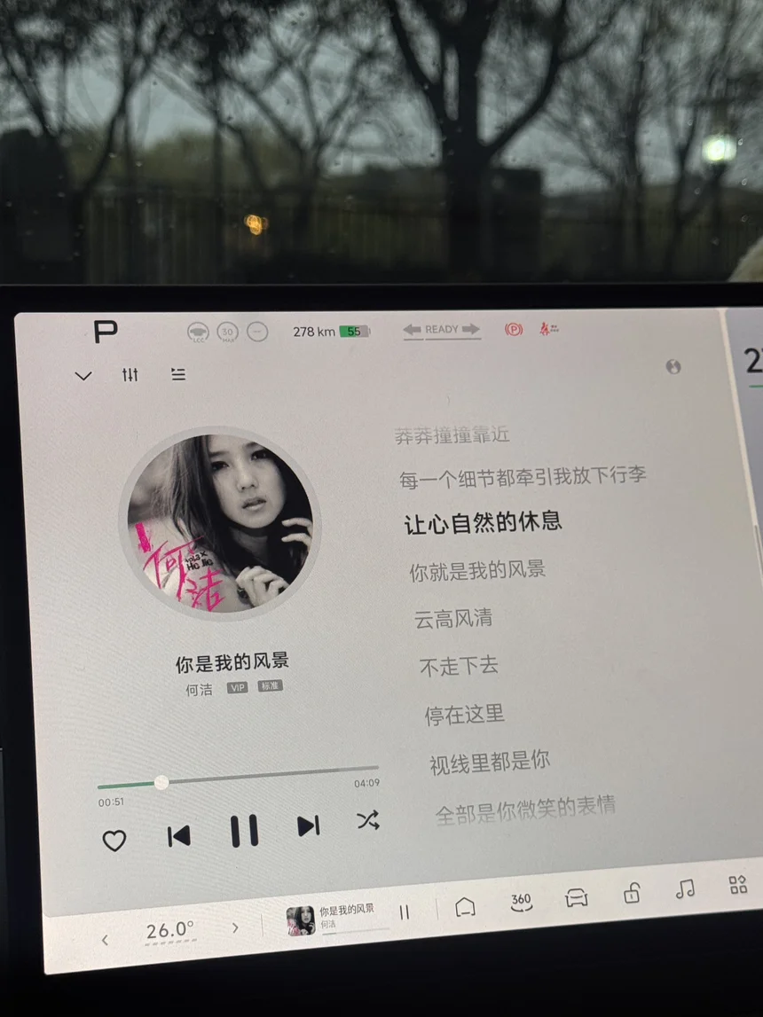 每天都很喜欢留一段独处的时间 在车里听一会儿歌 非常愉快 下雨天更是