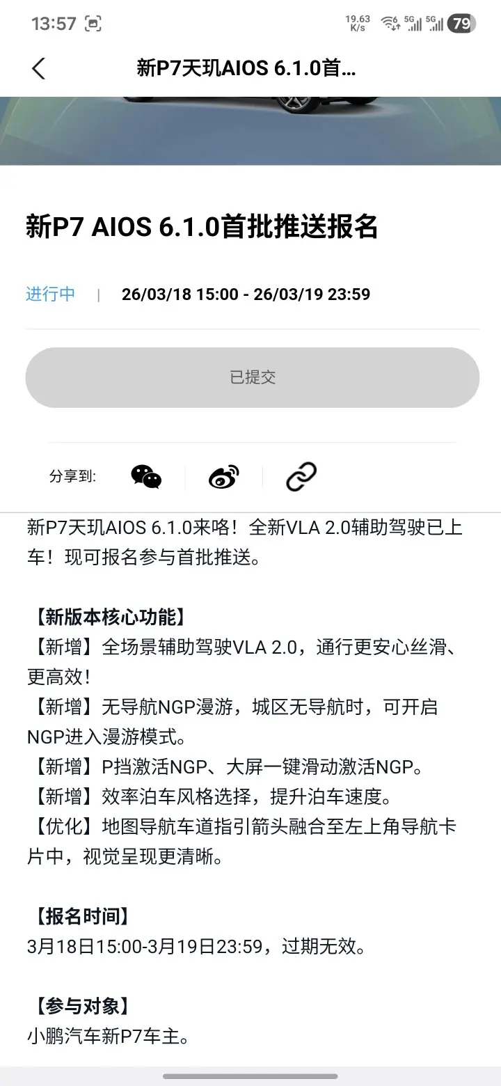 身为小鹏车主,真的已经迫不及待迎接第二代VLA的到来!一直关注着智驾技术的每一次进化,从体验到信任,再到满心期待,每一次升级都让出行更安心、更智能。 相信第二代VLA会带来更丝滑、更精准、更懂路况的智驾体验,无论是日常通勤还是长途出行,都能让人真正感受到科技带来的便捷与底气。 满心期待早日升级,亲身感受这一次全新进化,解锁下一代智驾实力!也期待和更多车友一起,分享这份来自未来的驾驶乐趣。 #小鹏汽车 #小鹏第二代VLA有点东西