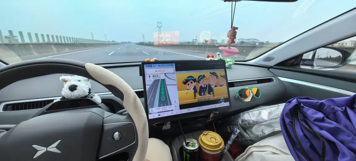 方向盘上的小狗挂件陪着我,听喜欢的歌、看窗外风景,车里就是我们一家三口的移动避难所,享受家庭的治愈时刻。