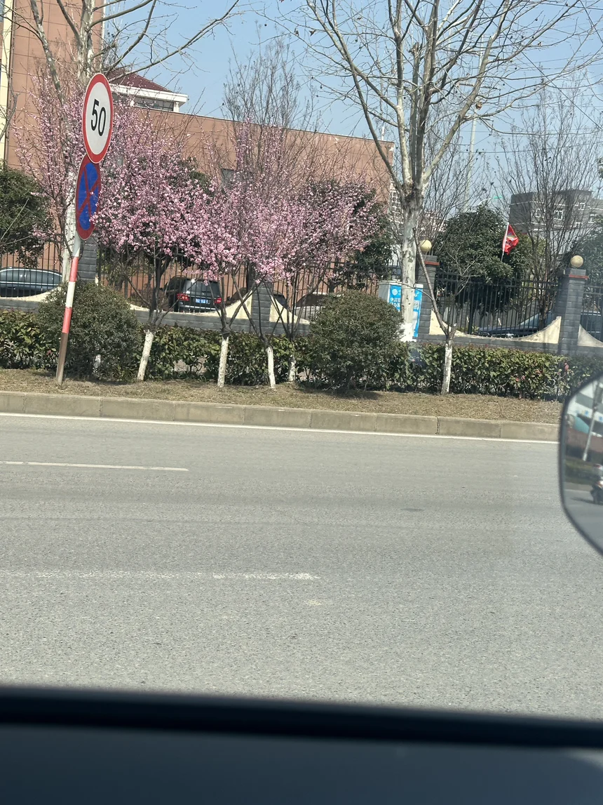 带着女朋友开着小鹏G7去考试,路上随见的都是花,春天的气息