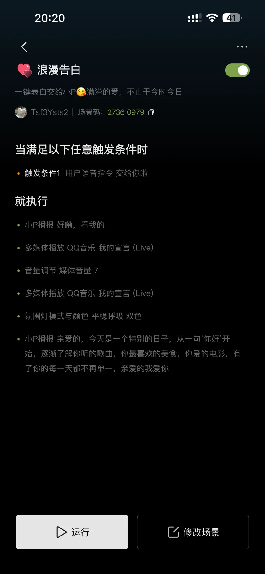 #玩转智慧场景# 用小鹏G7的智慧场景给她准备了女神节小惊喜🥰提前设置好「女神专属」场景,上车后语音唤醒小P,氛围灯亮起、专属BGM响起,让小p帮我说出不好意思出口的情话,看着她眼里的光,这就是智能座舱带来的浪漫吧💖