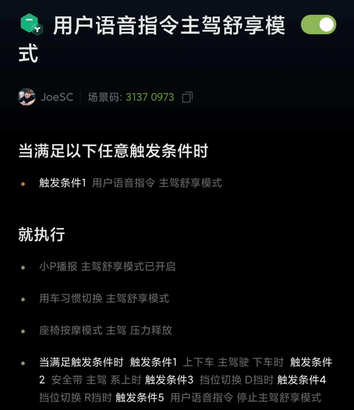 每天下班就算不开车,都要去车里坐一会,那是独属于自己的时光。分享一个场景码给大家