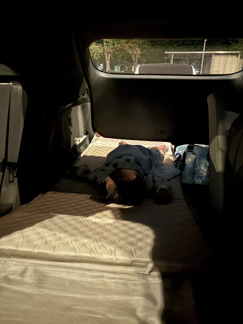 午休时间,打开后备箱,充气床垫铺好,躺进去舒舒服服睡一觉,在车上小小的世界里只属于自己一个人的小世界里。醒来又是新的开始!