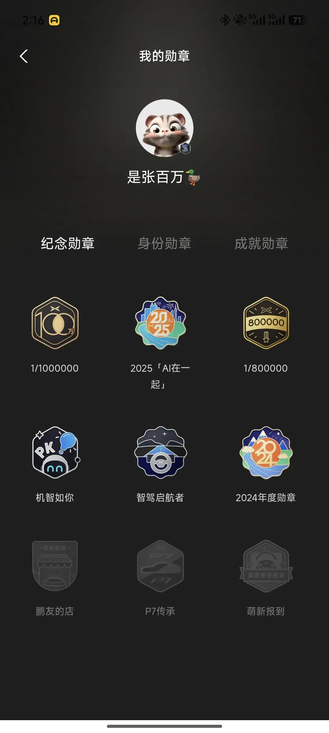 收集小鹏的勋章也是一种乐趣,一年多一点的时间,已经获得18枚勋章了,努力多收集一些