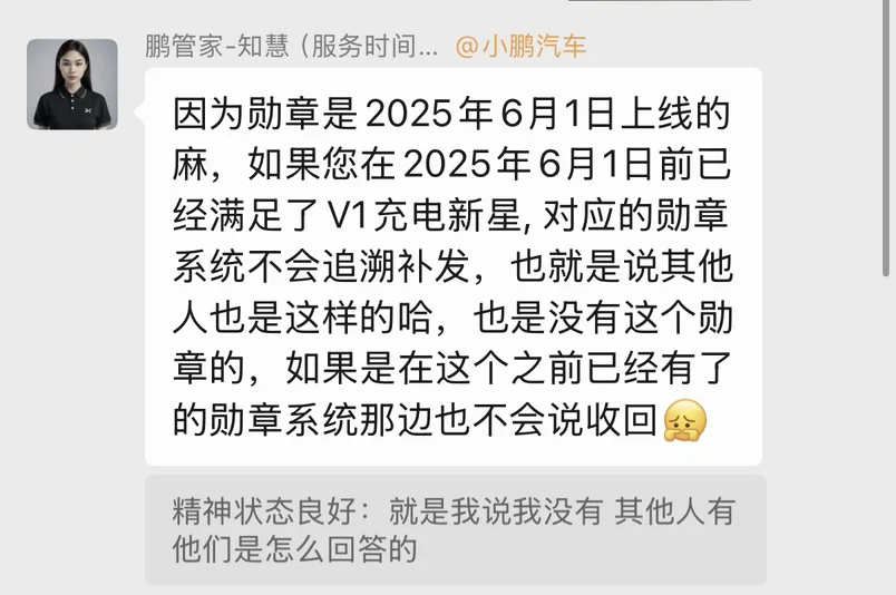 #晒晒我的勋章# 提车三年零两个月一共收集19个勋章啦~最喜欢的勋章还得是第一次智趣问答pk获得的《机智如你》,不止有数字勋章展示,更主要的是他还有实体勋章冰箱贴🤩我最可惜的是为什么后面新出的充电新星部分老车主不能获得😢我的朋友都有,就我没有,当时还问过管家,我的鹏管家也好耐心去帮我问了,那边部门说不会再补发,发了的也不会收回,这样让我在我的鹏友面前怎么抬得起头!😤能不能都补发一下!!明明v1应该是小鹏车主都有😤