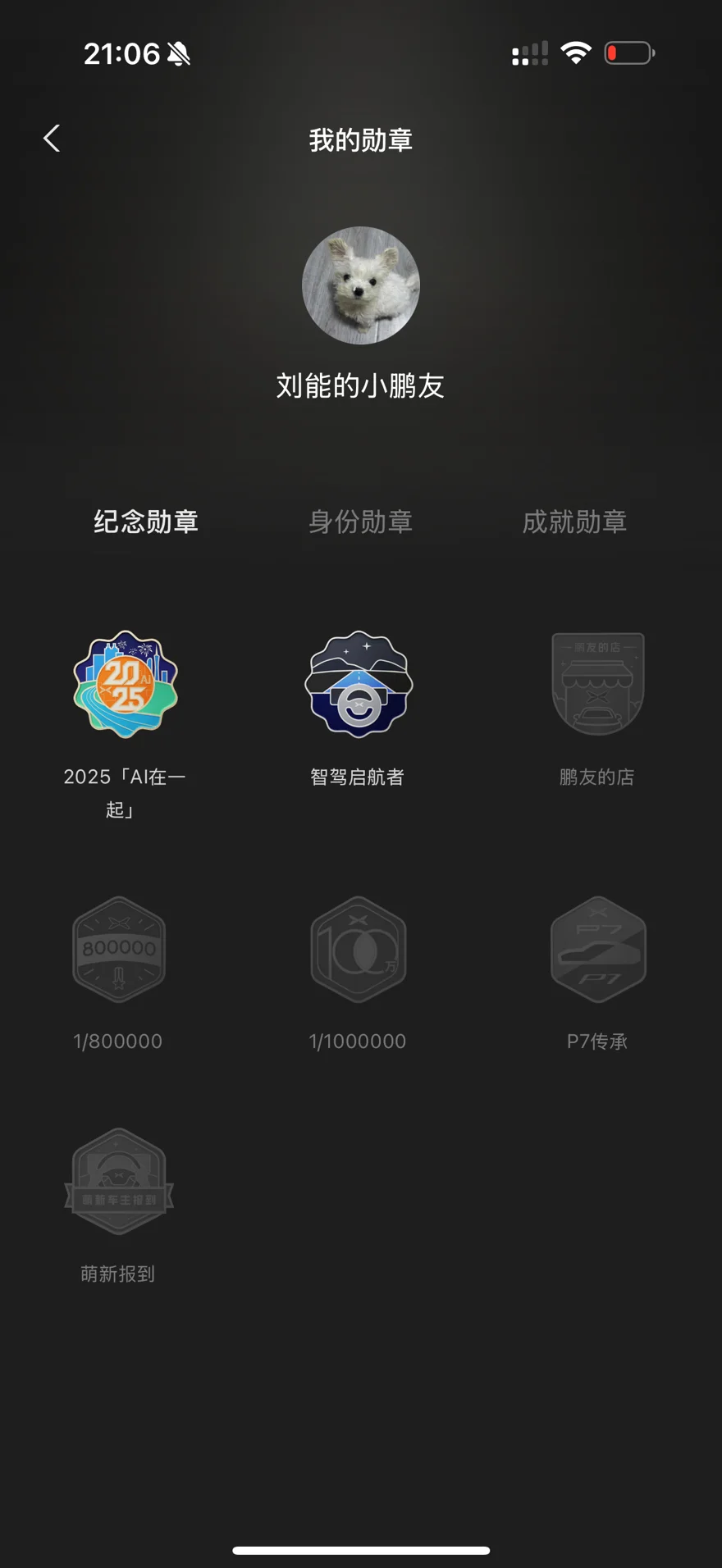 比较猎奇的勋章呢 也是刚提车的时候 有一个智驾勋章 说实话当时还是不敢完全交给g7 让他自己在市区开 也是磨合了一段时间 我觉得我的g7是完全能让我放心 并且水平非常可以 哈哈哈哈哈