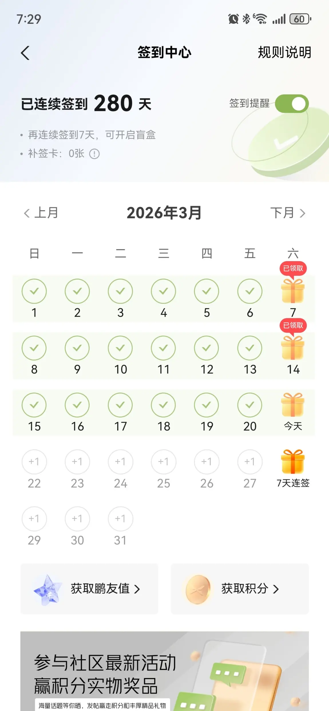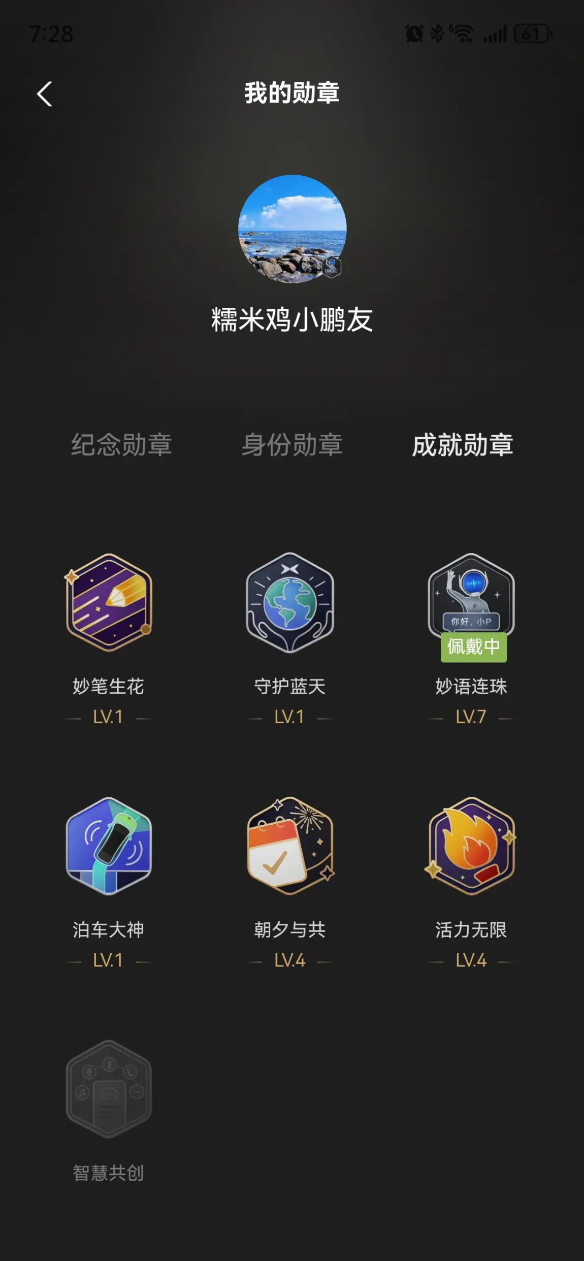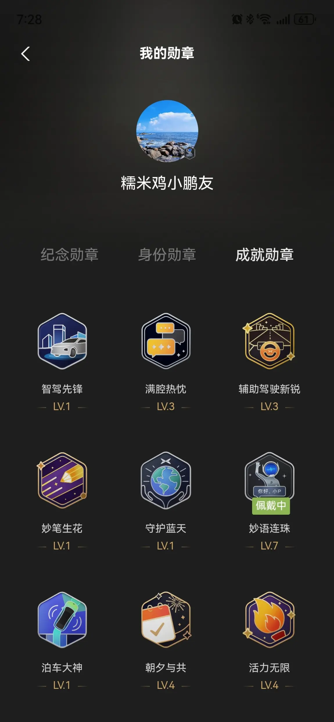 280天,自从有了小鹏,拥有了自己的爱车,每天都去收集社区不同话题的任务,参与小鹏社区话题活动,慢慢收集很有意思!逐步提升勋章级别,更有成就感!😘