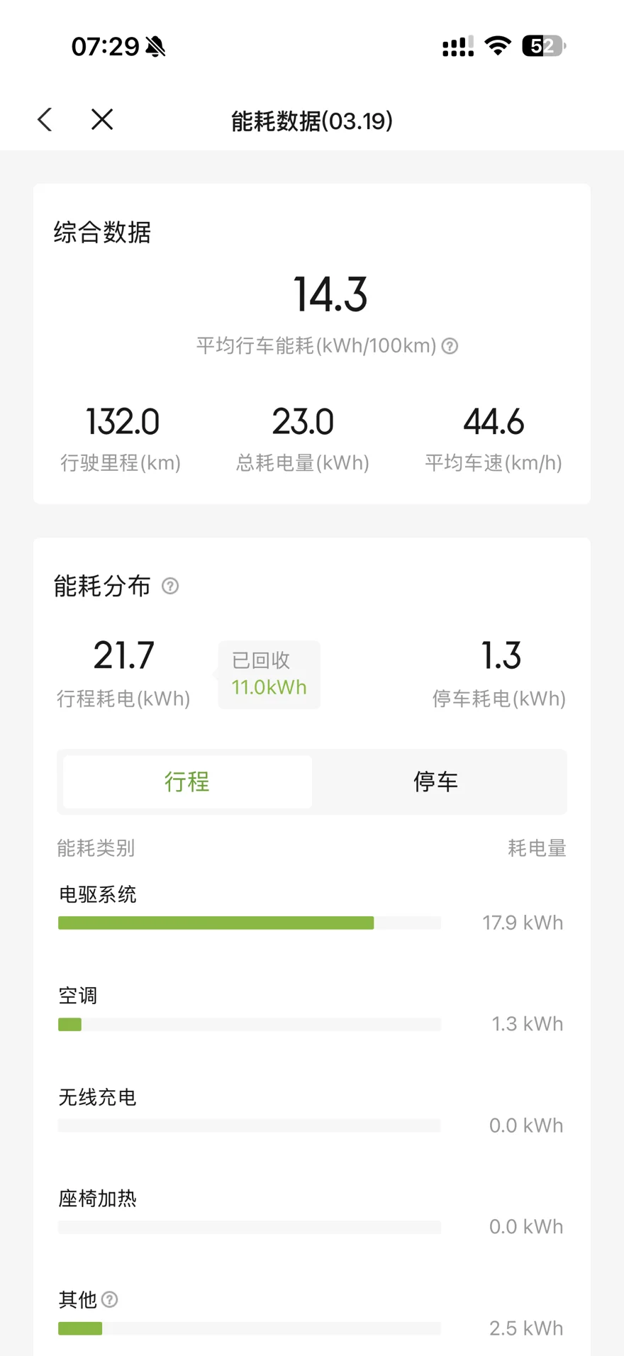 #能耗报告# 两年多的时间用下来,G6的能耗确实优秀。看我这个19日的单日能耗,看着14.3也不是很低,但是这是在环境温度比较低然后开启了空调,并且是差不多可以算是暴力驾驶的情况下的取得的,已经很好了哦👍