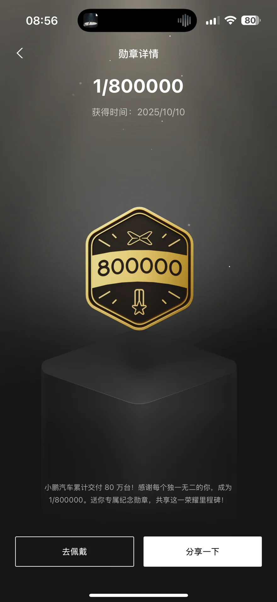 #晒晒我的勋章# 从80万到100万,见证了 milestones 一个个达成;小P语音不知不觉也喊了3000多次,从最初的生疏到现在的默契,它已经成了车里最懂我的伙伴。三月的雨季,窝在P7里听着歌,雨声、音乐声,偶尔再唤一声“你好,小P”,感觉整个空间都是属于自己的治愈角落。每一枚勋章都是一段回忆,从1/800000到1/1000000,很荣幸一路同行。继续收集,继续出发