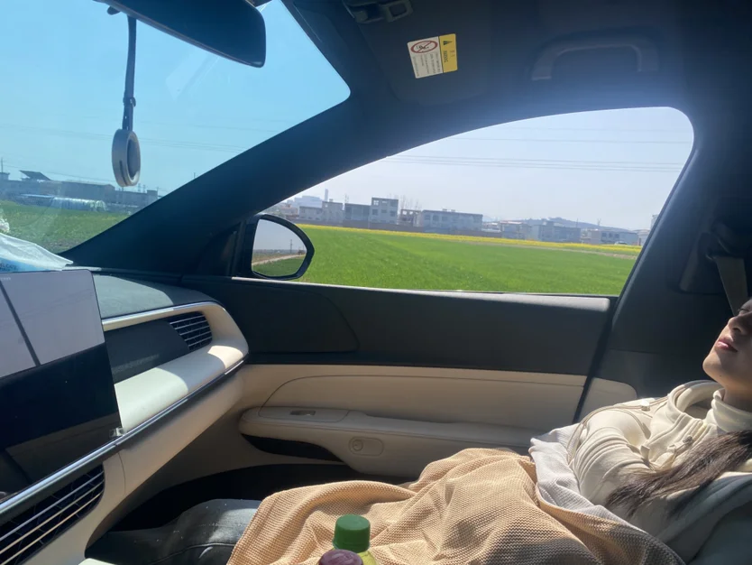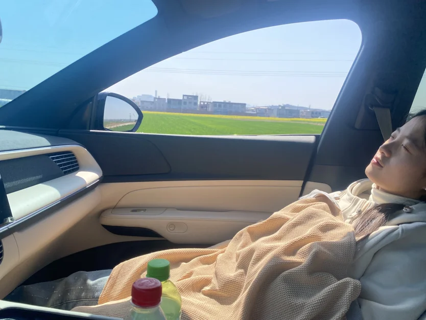 #小鹏汽车 小鹏G6# 车内治愈时刻# #世界睡眠日 春日煦煦,处处花香的季节,真的让人心生畅然。我喜欢离开城市的喧嚣,随处的一片麦绿,一片油黄,比争艳的桃花,木兰更能让人吸收勃勃生机。自从有了小鹏G6,它真的不仅仅是一辆交通工具,之前我以为是新鲜感作祟,晚上在车里看电影,白天在车里小憩💤不觉两年了,更习惯了这种方式,属于成年人的放松时间真的不多,它不仅是“睡胶囊”还是我暂逃喧嚣的私人空间。最后必须夸一夸它的座椅皮质,柔软的承托力和亲肤的透气性,没有一刻让我感觉久坐不透气的情况,电车比油车的好处是座舱没有任何异味,确实如此