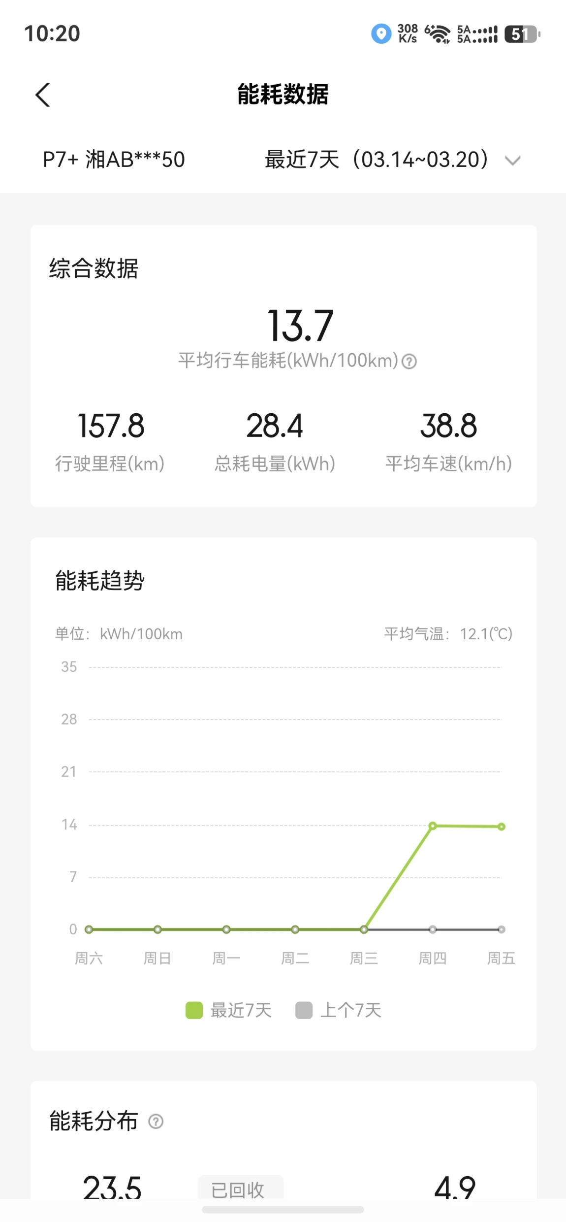 湖南下雨天的能耗,纯市区,开了空调,能耗还是可以的!加油,期待高速来个续航长测!!