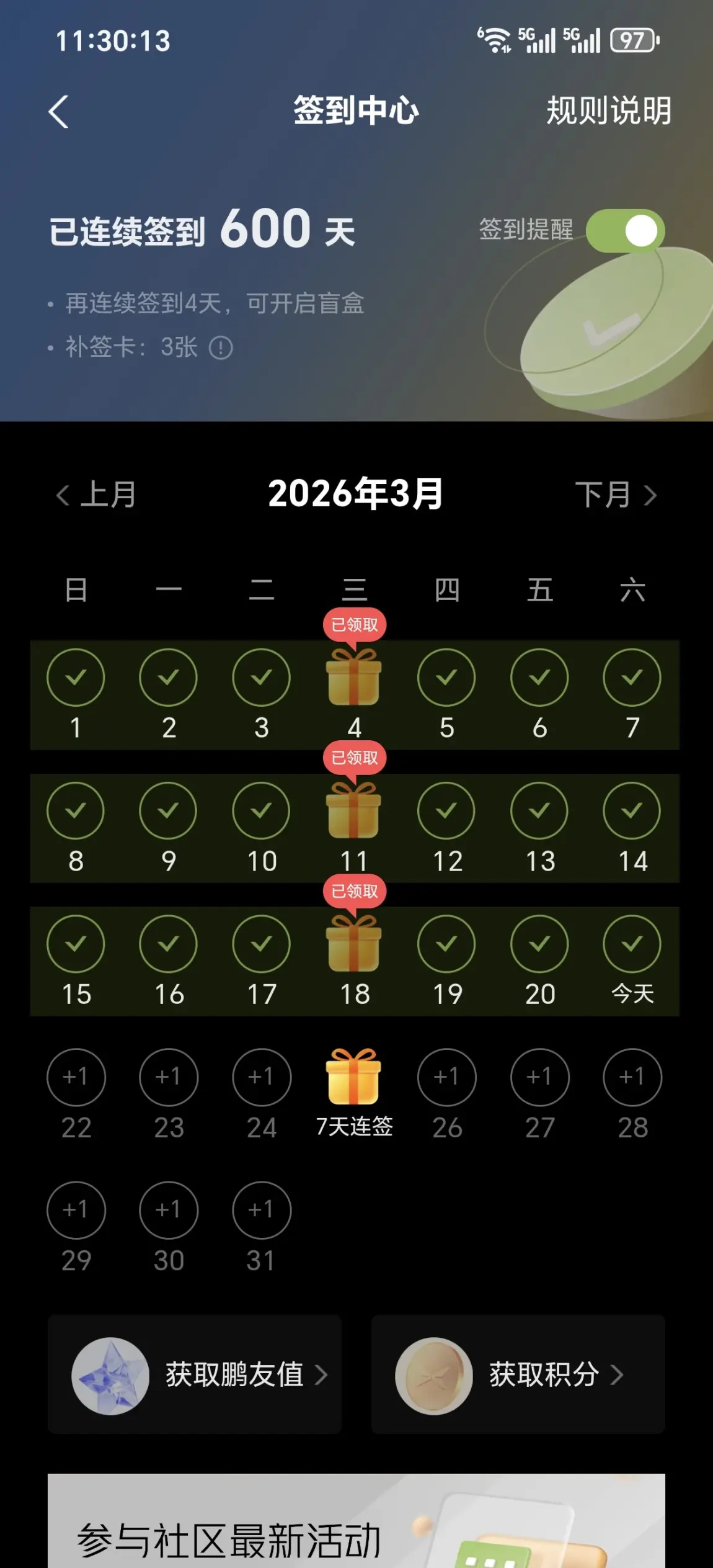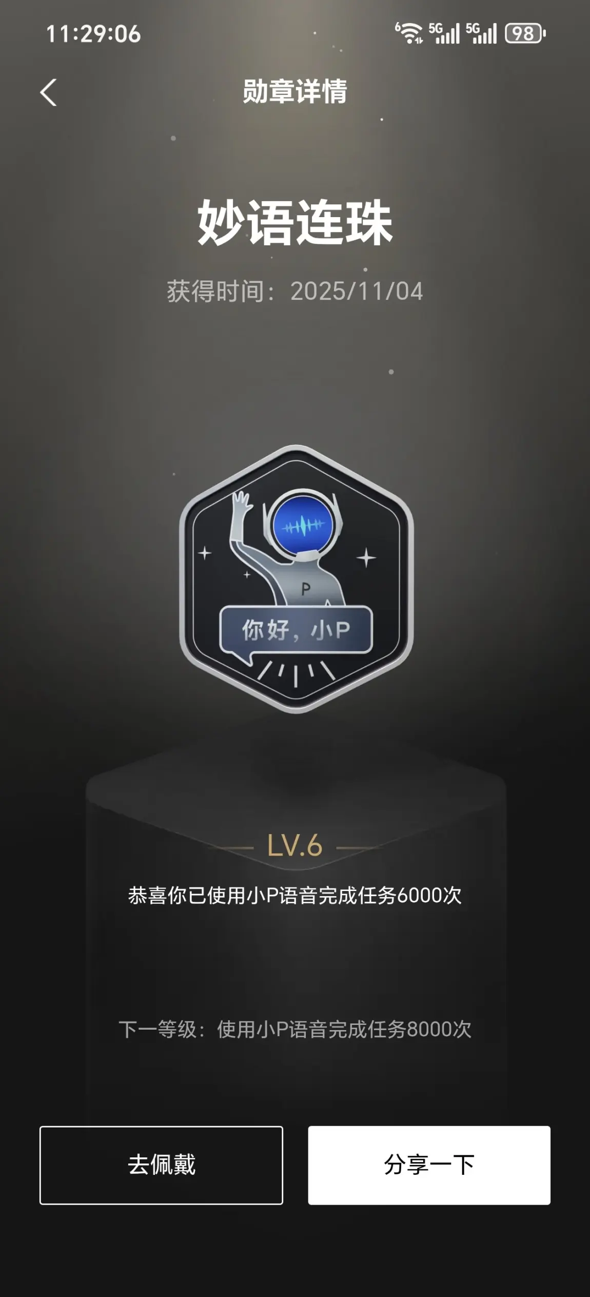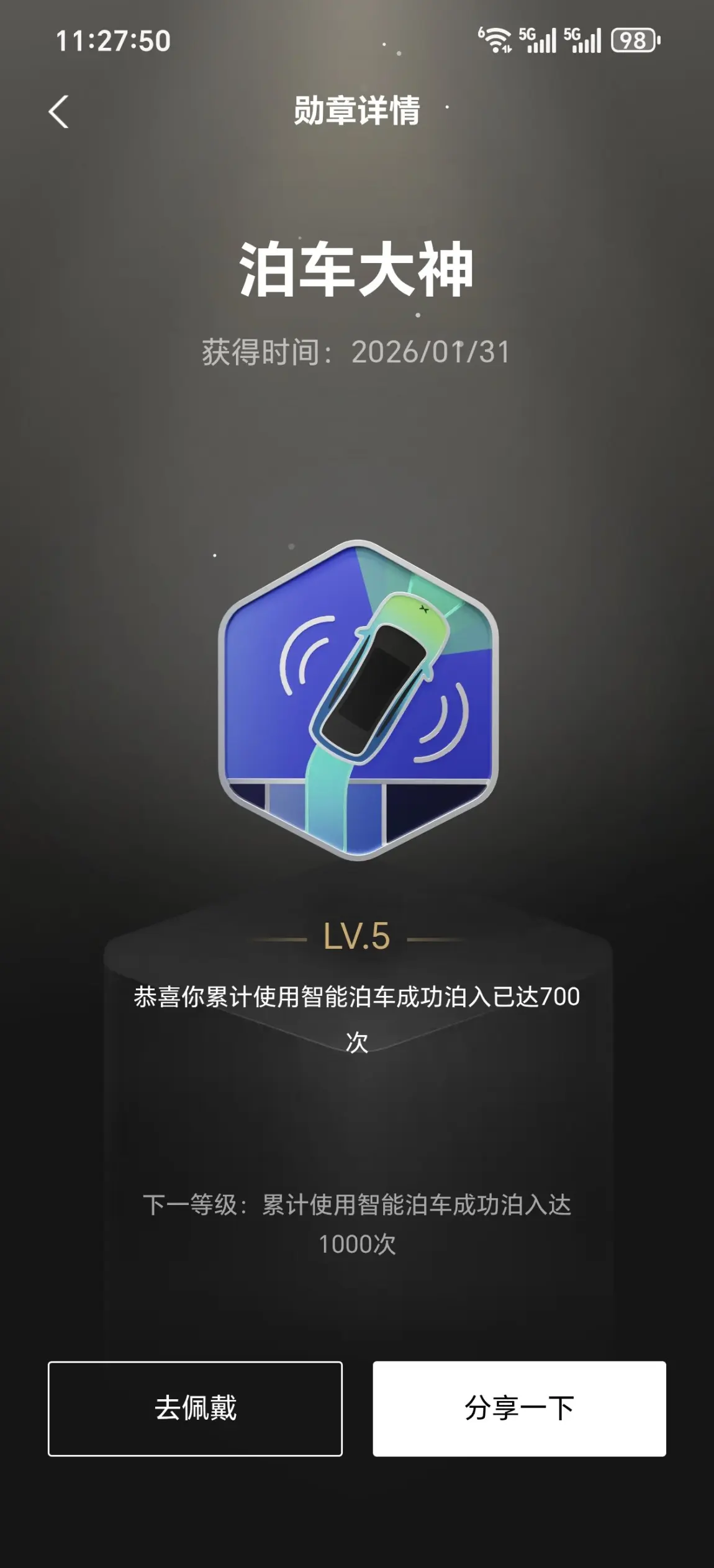 从「朝夕与共」的连续签到,到「活力无限」的鹏友值积累,每一枚勋章都是时光的刻度。「充电先锋」与「充电领航」见证了我从V2到V3的充电成长,500度电的背后是每一次出发与归来的安心;「泊车大神」700次智能泊车的成就,让我彻底告别停车焦虑;「智驾先锋」与「辅助驾驶新锐」则是智能驾驶里程的勋章,4000公里的智驾旅程,让我见证科技改变出行的力量。
