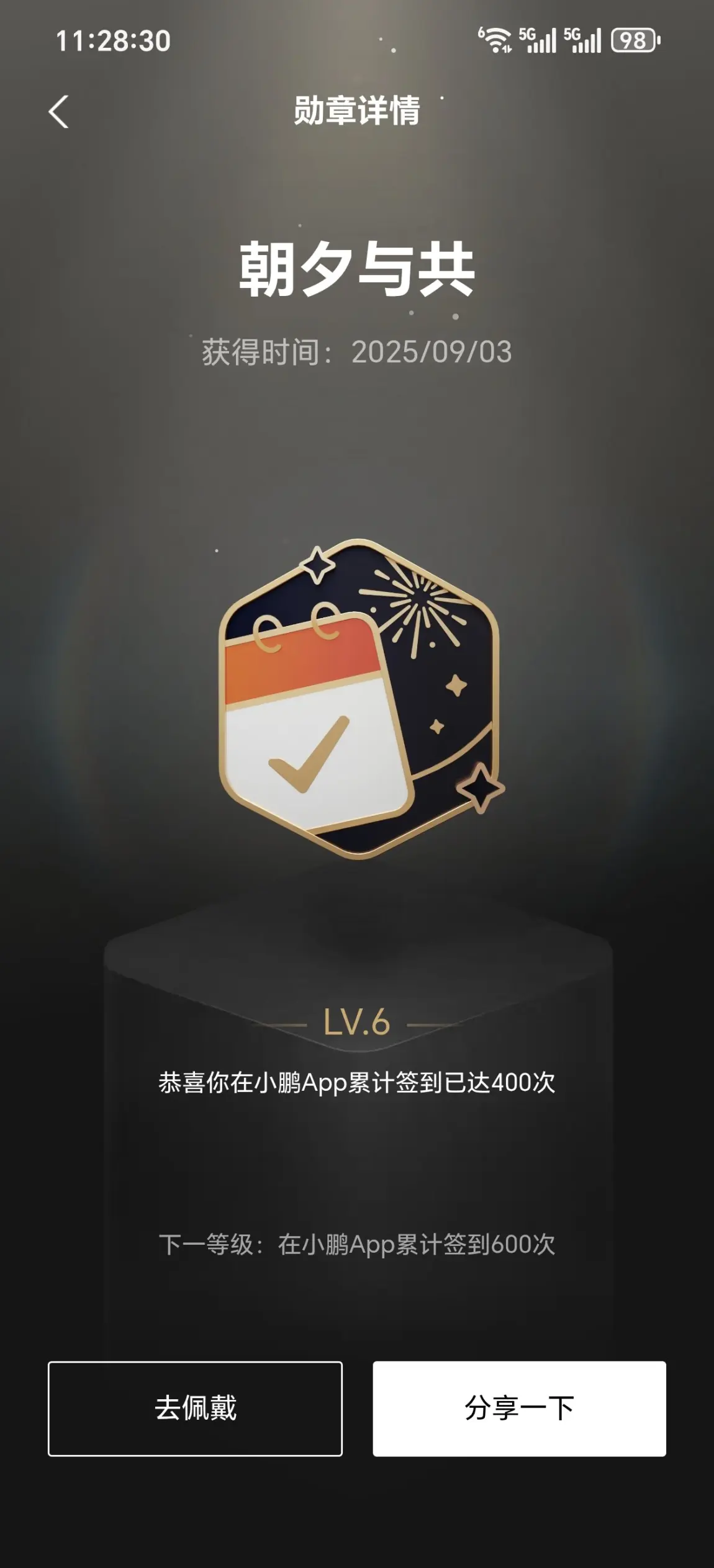 600天,18枚勋章,不是终点,而是新的起点。它们是陪伴的证明,更是对智能出行生活的热爱。未来,继续与小鹏一起,奔赴更远的路。
