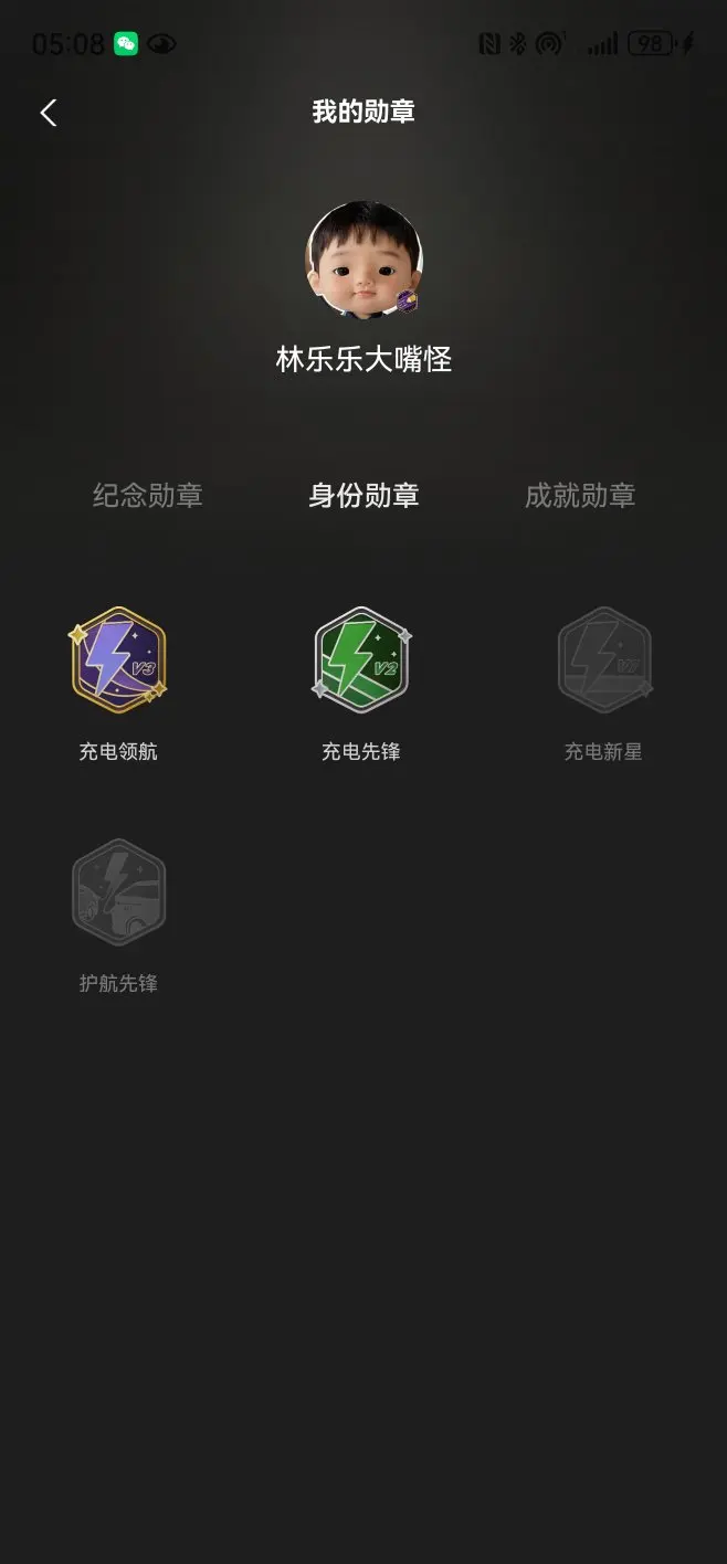 - 身份勋章:「充电领航V3」「充电先锋V2」两枚勋章,是我日常通勤、自驾出行的最佳见证。从阳江到珠海、广州、广西、云南,每一次长途自驾、每一次补能,都在为这两枚勋章升级助力,也让我彻底告别了里程焦虑。