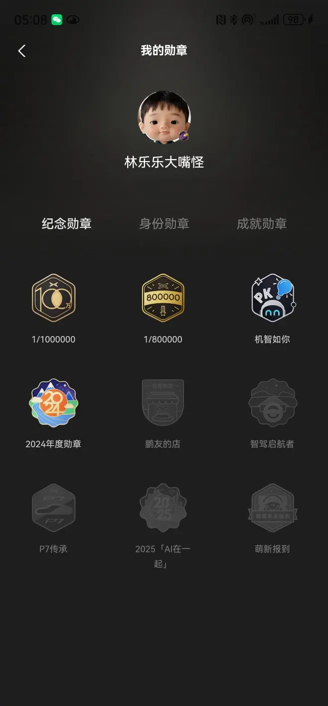 细数下来,也有不少勋章成了我的小遗憾:「鹏友的店」「智驾启航者」「P7传承」「2025「AI在一起」」「萌新报到」这些限定勋章,因为各种原因没能收入囊中,以后加油努力!
