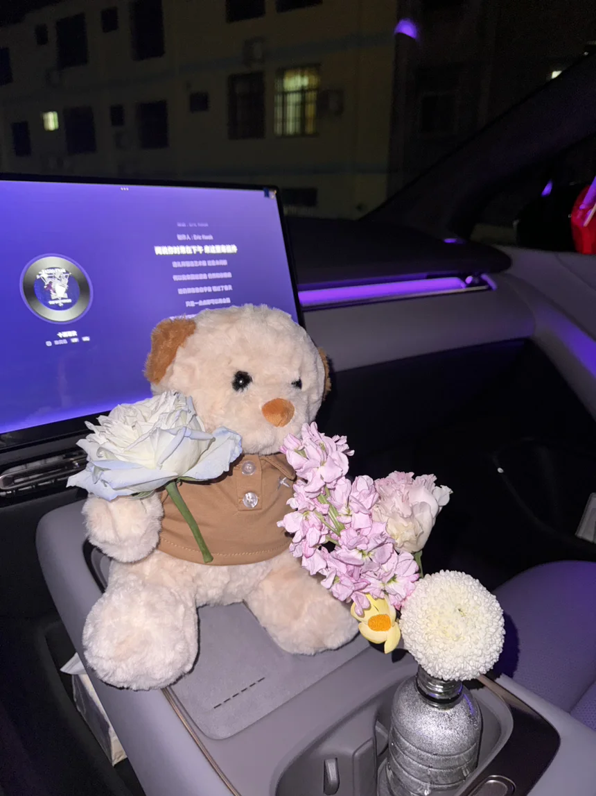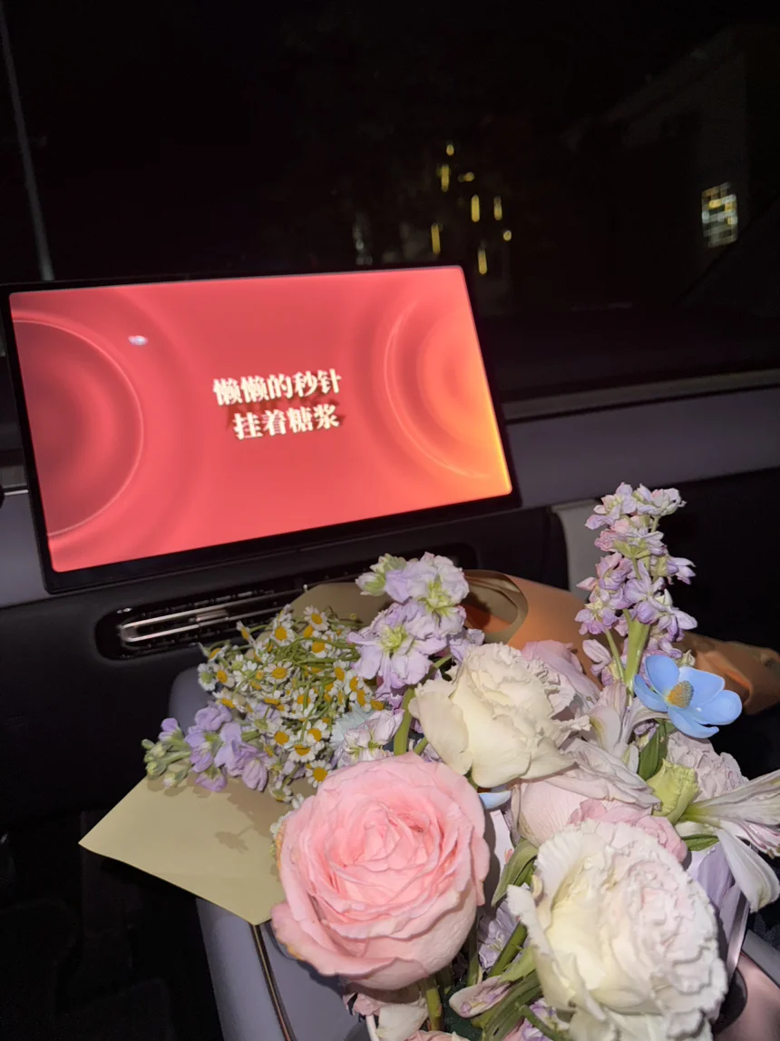 喜欢下班后在车里听歌,很放松。我还买了花花装饰我的车,看起来心情就很好。动态水波纹歌词加上氛围灯,空气里淡淡的花香和香薰味,好治愈💕