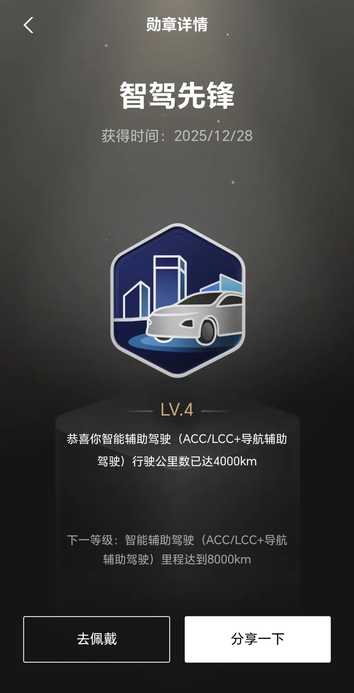 智驾先锋勋章,使用智能辅助驾驶超过4000公里,越来越信任小P开车了!