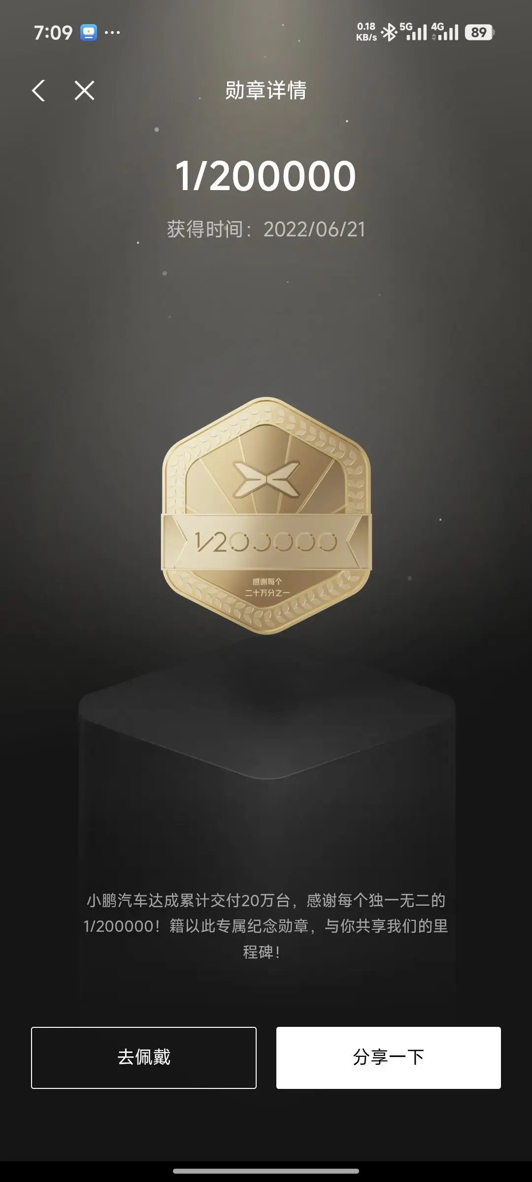#晒晒我的勋章# 目前已集齐21枚勋章,其中20万分之一的这枚勋章最值得纪念,证明我是小鹏汽车20万台的时候就在了,见证小鹏汽车的成长,一路走来,有坎坷,也有高光时刻,相信小鹏汽车会越来越好,2026,继续加油,马力全开,勇往直前!