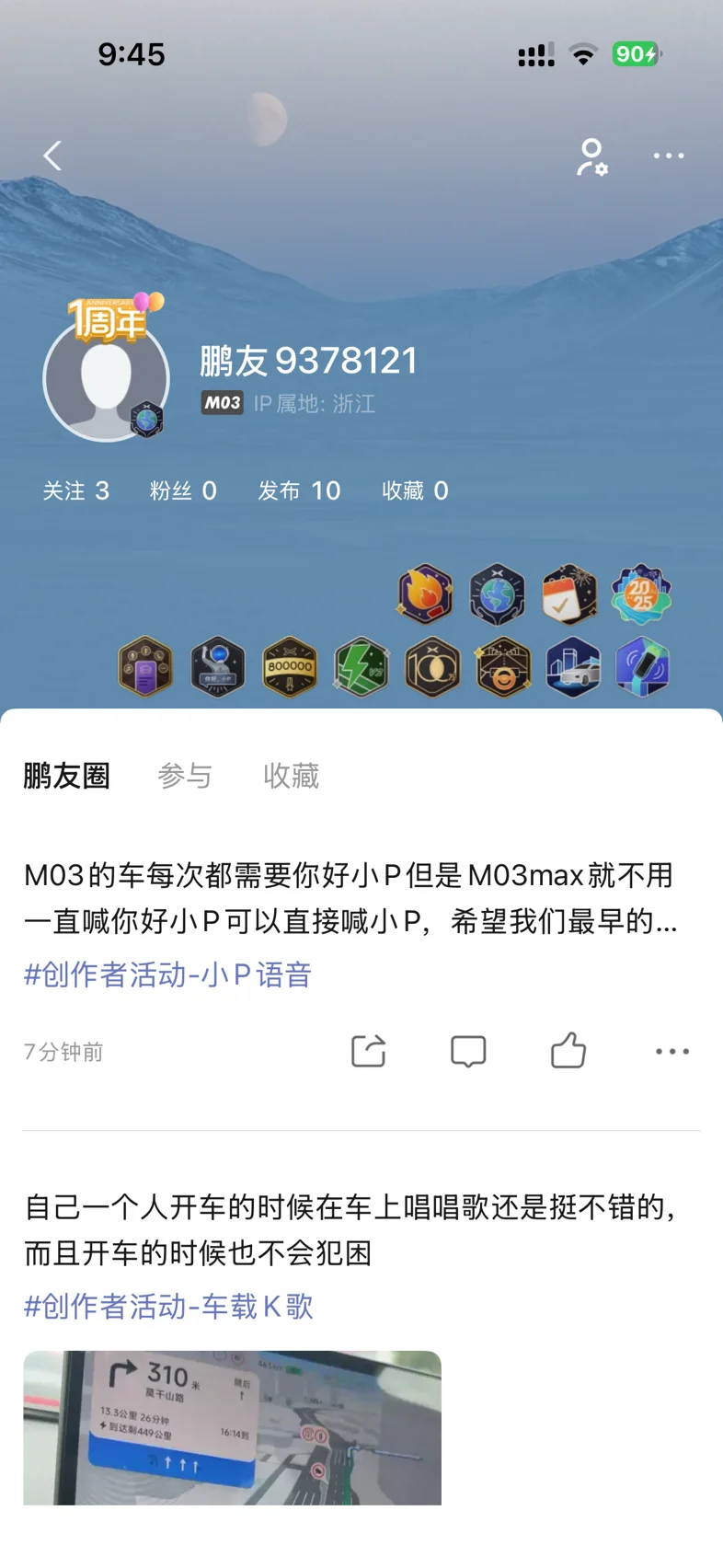 一年的时间过获得了 12枚勋章,这个车开起来挺好的,续航达成率也给力,外观漂亮,小鹏的管家服务也好,👍🏻一下