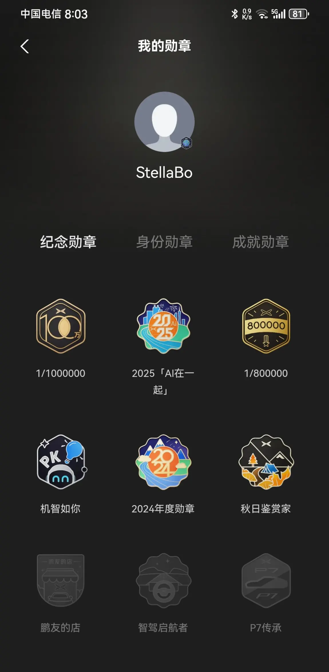 使用了小鹏G9 2024 702 Max两年后,存到了17个勋章,这记录了一路使用的里程碑和回忆。期望未来的时间记录更多的事情。